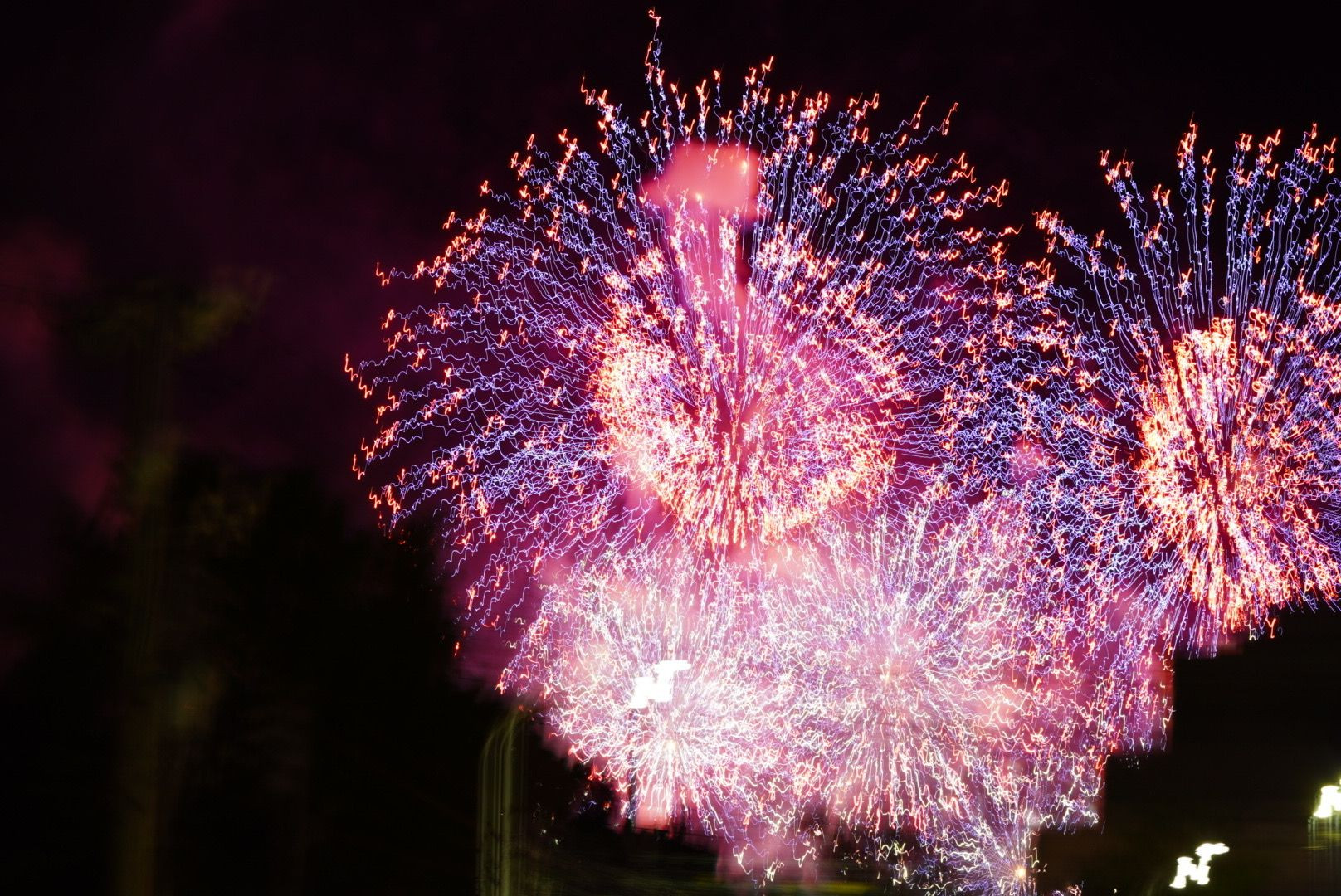 夏の広島の宇品海岸の花火大会に行き望遠レンズで撮影しました。