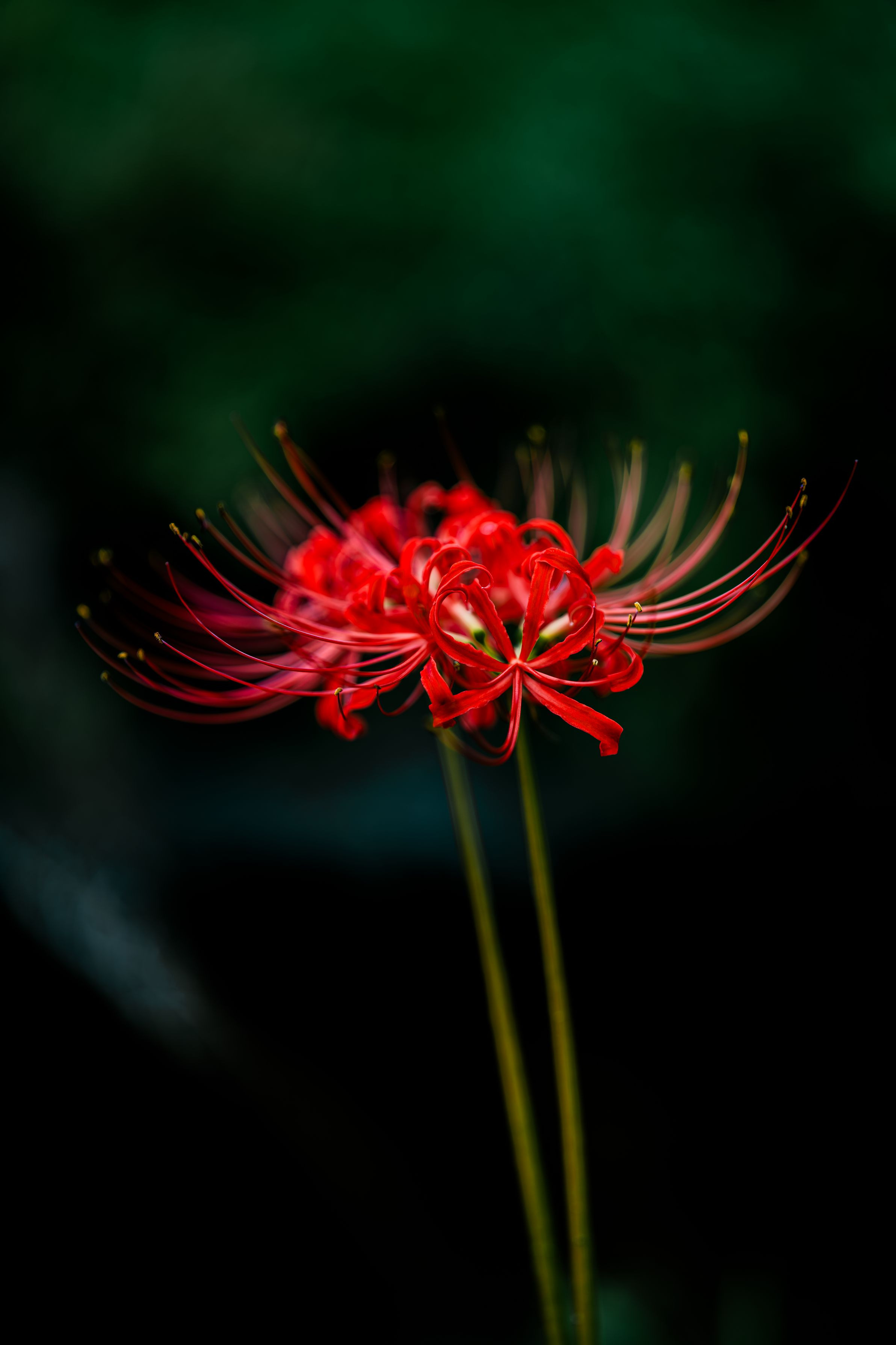 各地で見頃を迎えているヒガンバナ(彼岸花・曼珠沙華)です。 一株だけポツンと咲いていたのを見て、思わずシャッターを切りました。 たとえ一株だったとしても、二輪咲いていれば寂しくないのかもしれませんね。 Retouch: Adobe Lightroom
