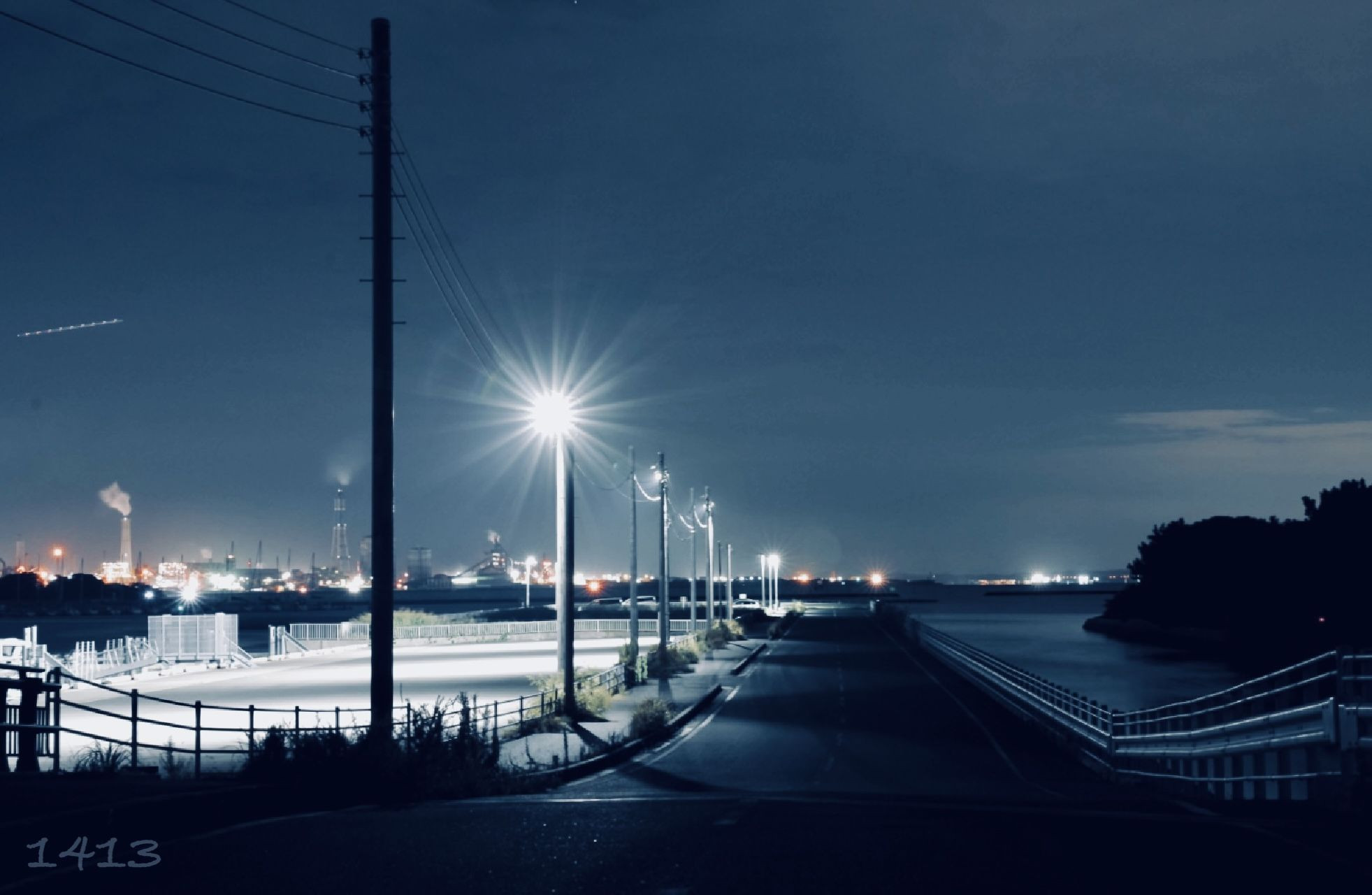 工場に溶け込む夕陽