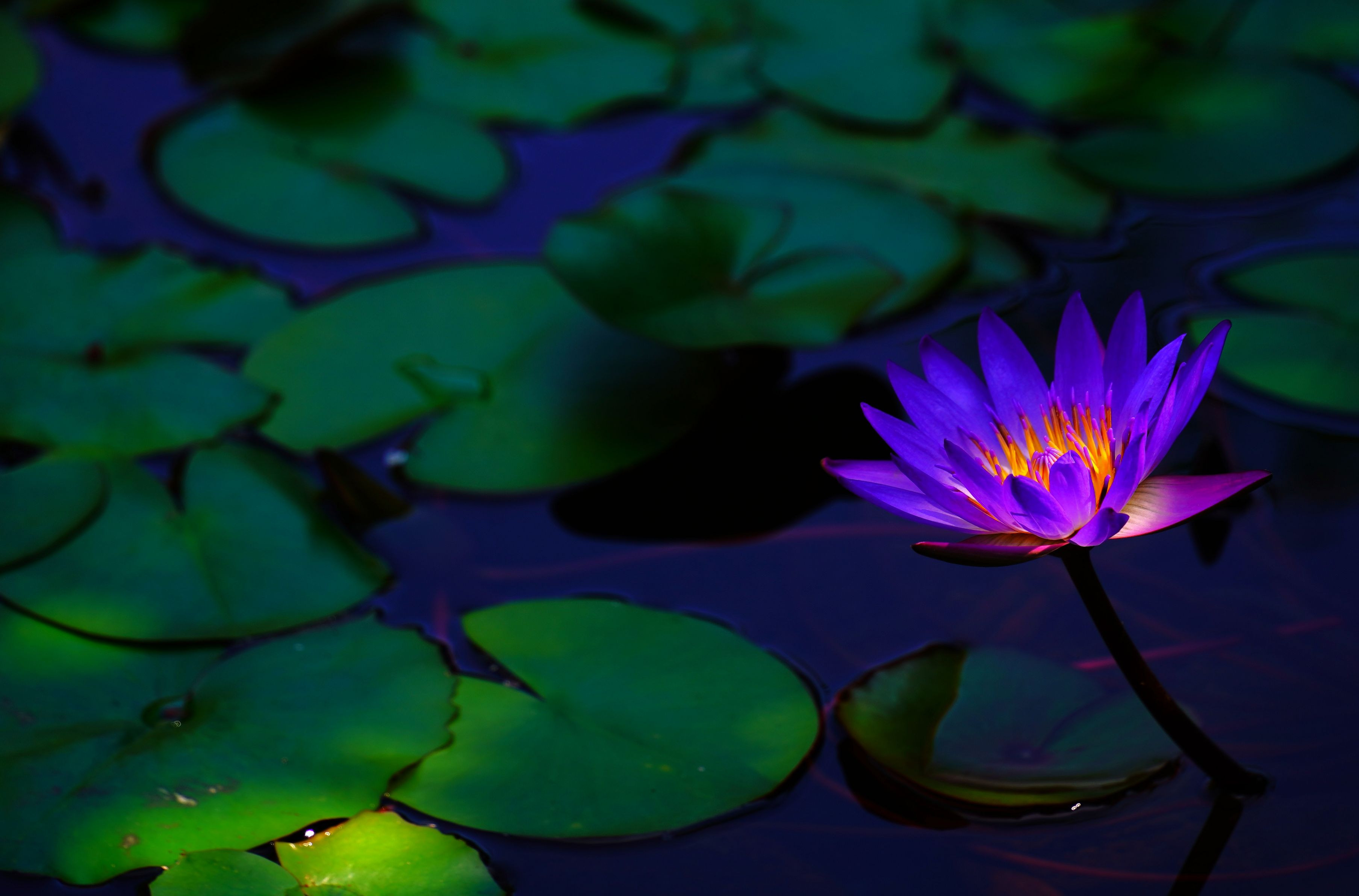 日陰の中のひとさじの光 幻想的な睡蓮を浮かび上がらせました