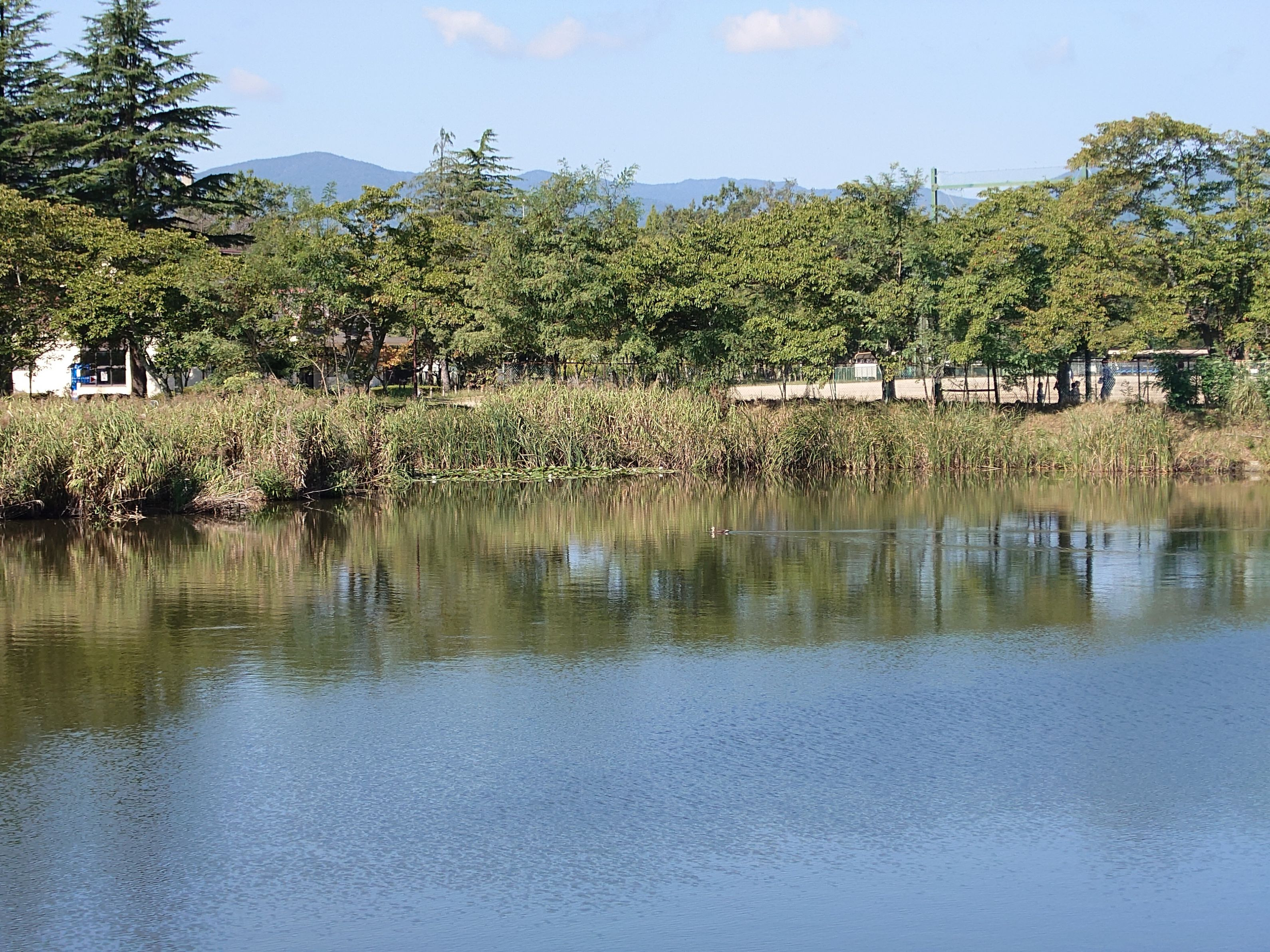わんこと公園を散歩していたら鴨が泳いでいてひきなみがきれいでした。