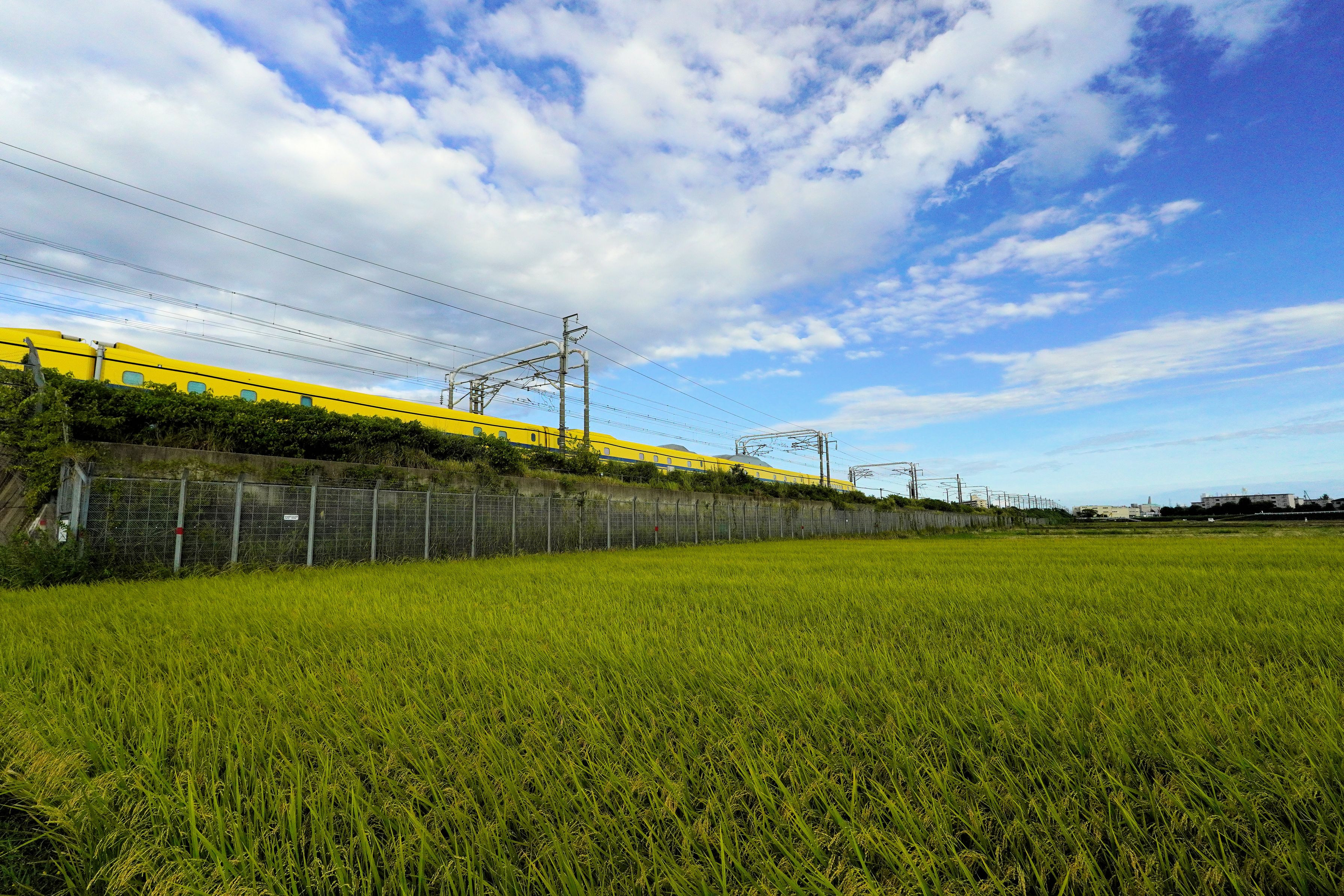 近くの稲田で夕方近く新幹線を撮ってみました。日差しの変化が多い一日で、秋の訪れを感じさせる涼しさもある日和でした。