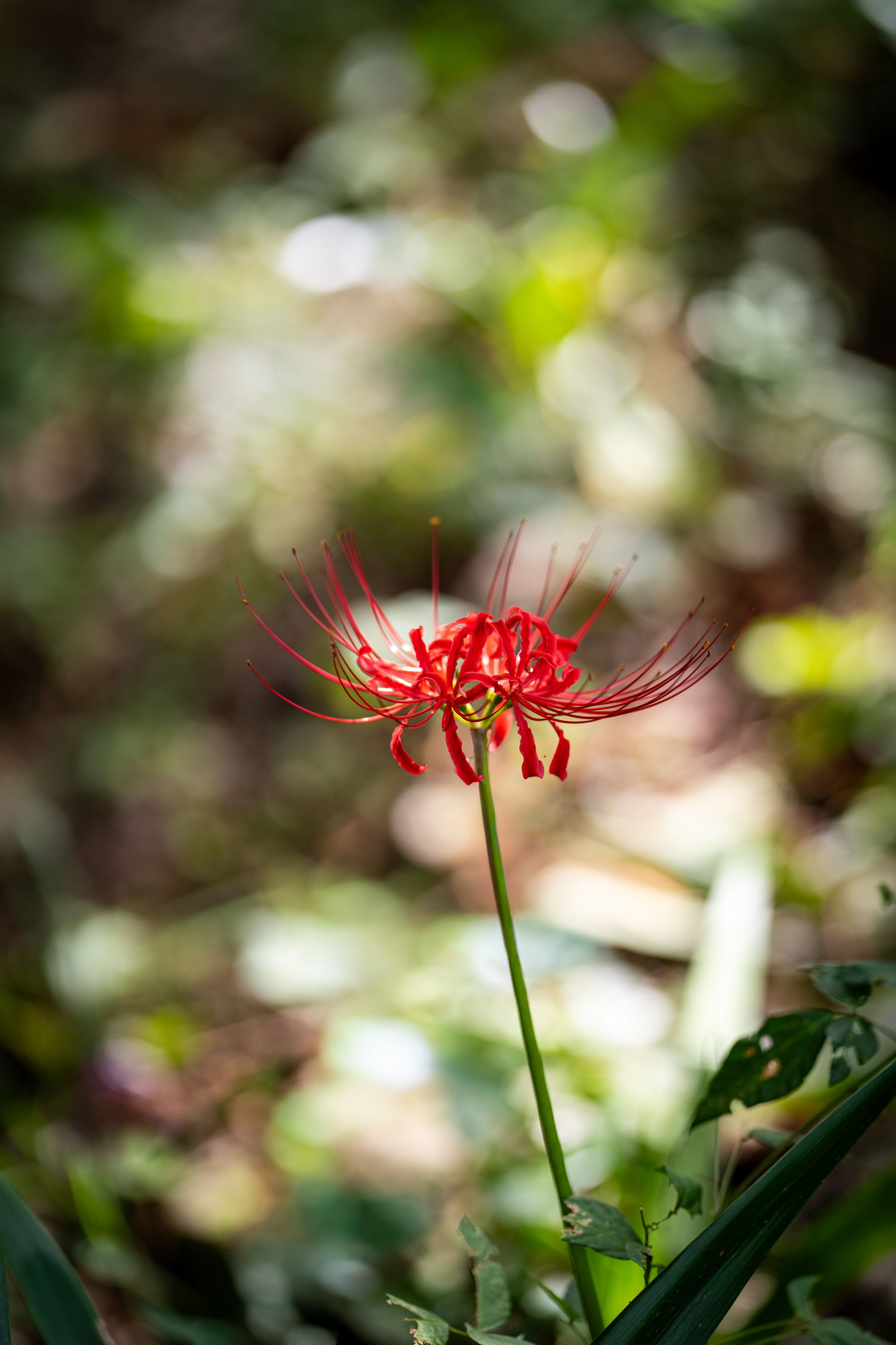 ぽつんと咲いてる彼岸花を見つけるとついつい撮ってしまいます! 丁度背景が玉ボケになる様に撮ってみました