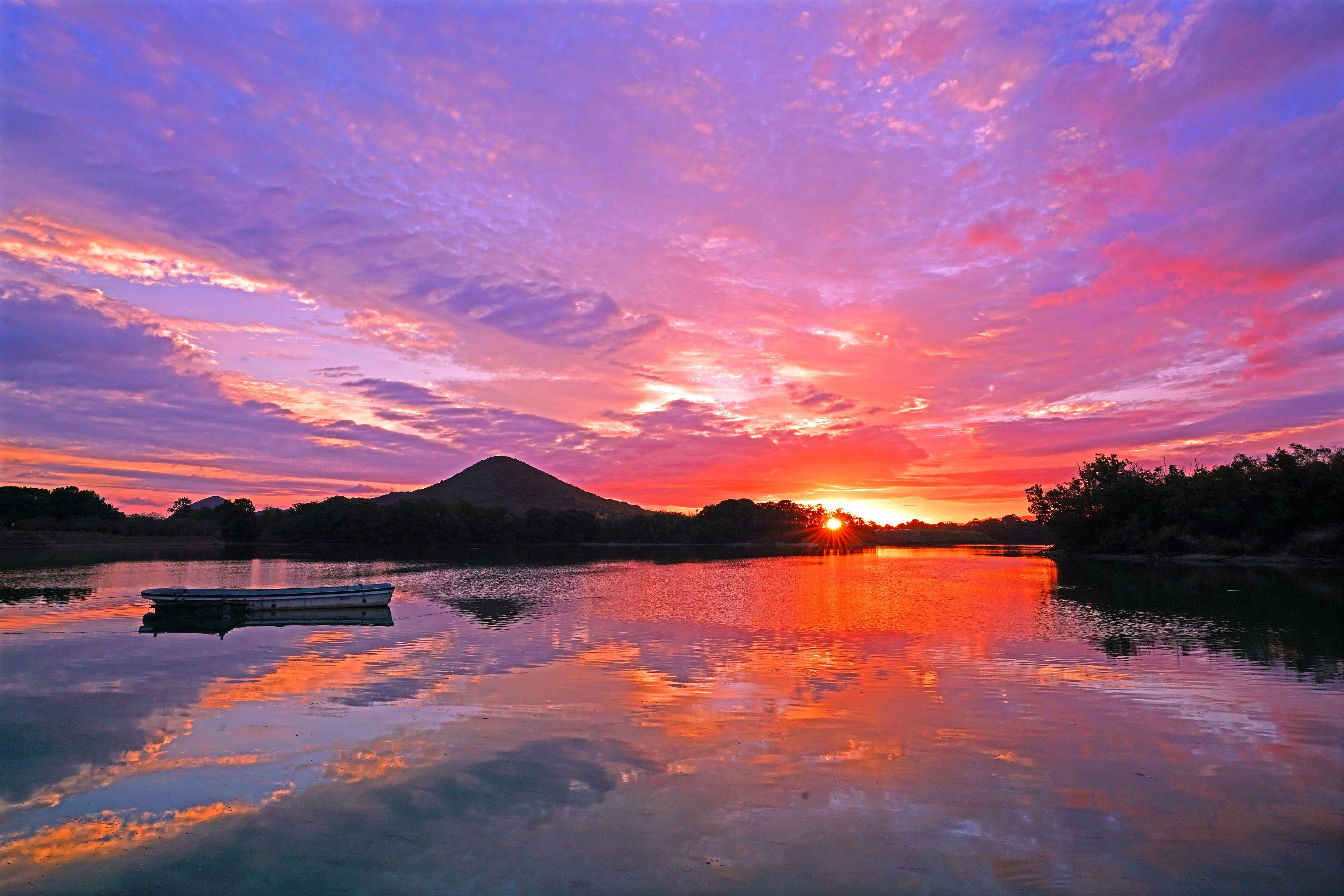 昇陽とともに朝焼けが綺麗。