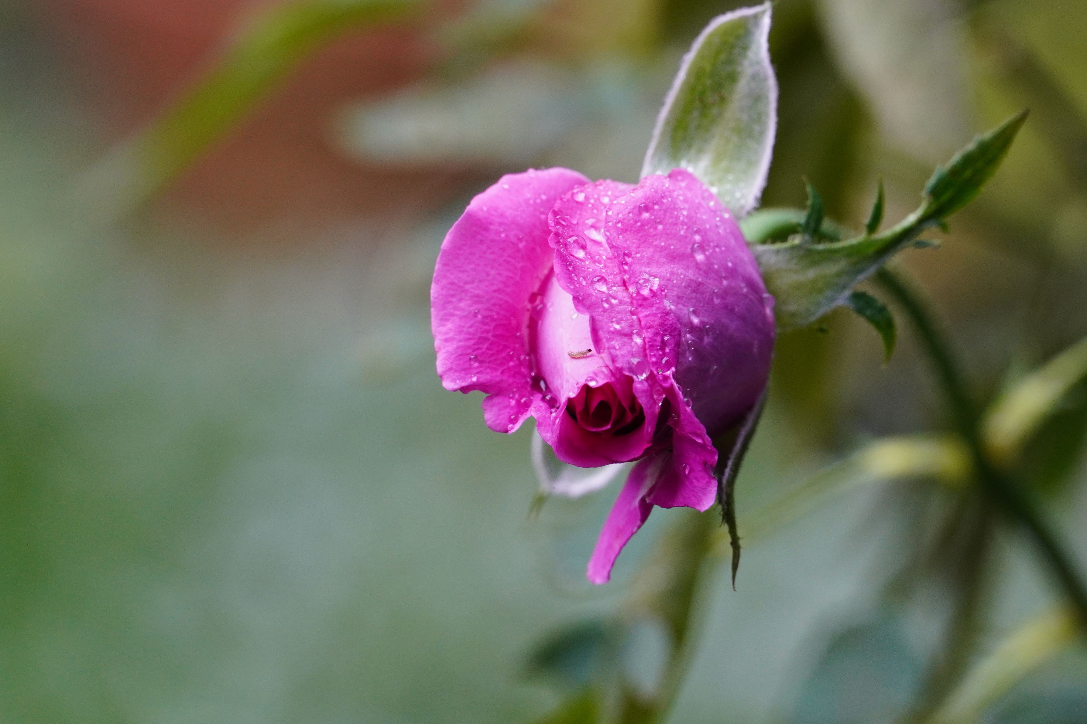 猛暑もやっと終わり、秋雨に濡れる庭では、秋バラのつぼみがほころんできた。品種はシャルトルーズ・ドゥ・パルム。