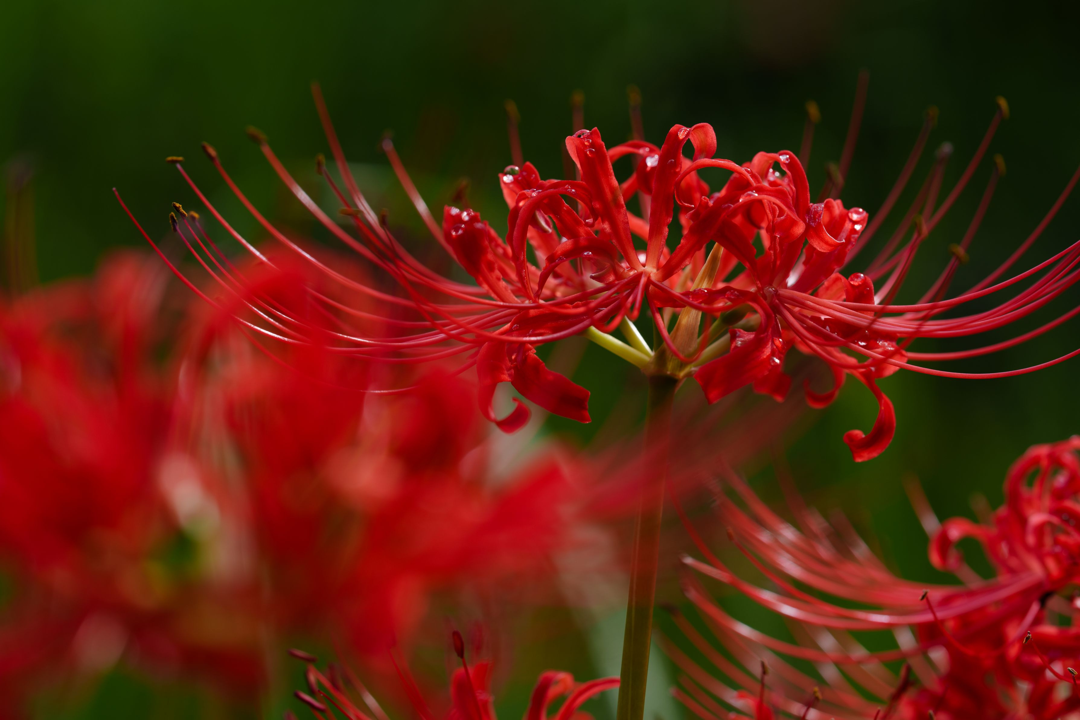 猛暑もどこへやら、秋の風が吹き始めました。 雨上がりに彼岸花がきれいに咲いていました。