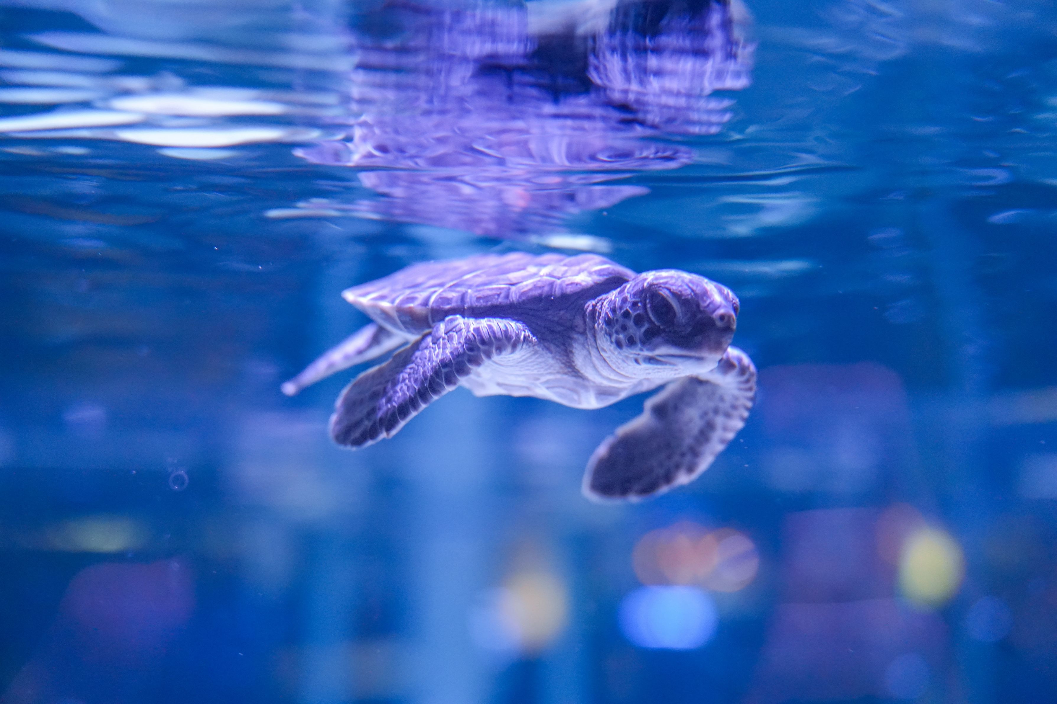 某水族館にてウミガメの赤ちゃんが生まれたとのことで元気いっぱいに泳ぐ姿を捉えた一枚です。 小さな体で元気に泳ぐ姿になんだか元気をもらいました。