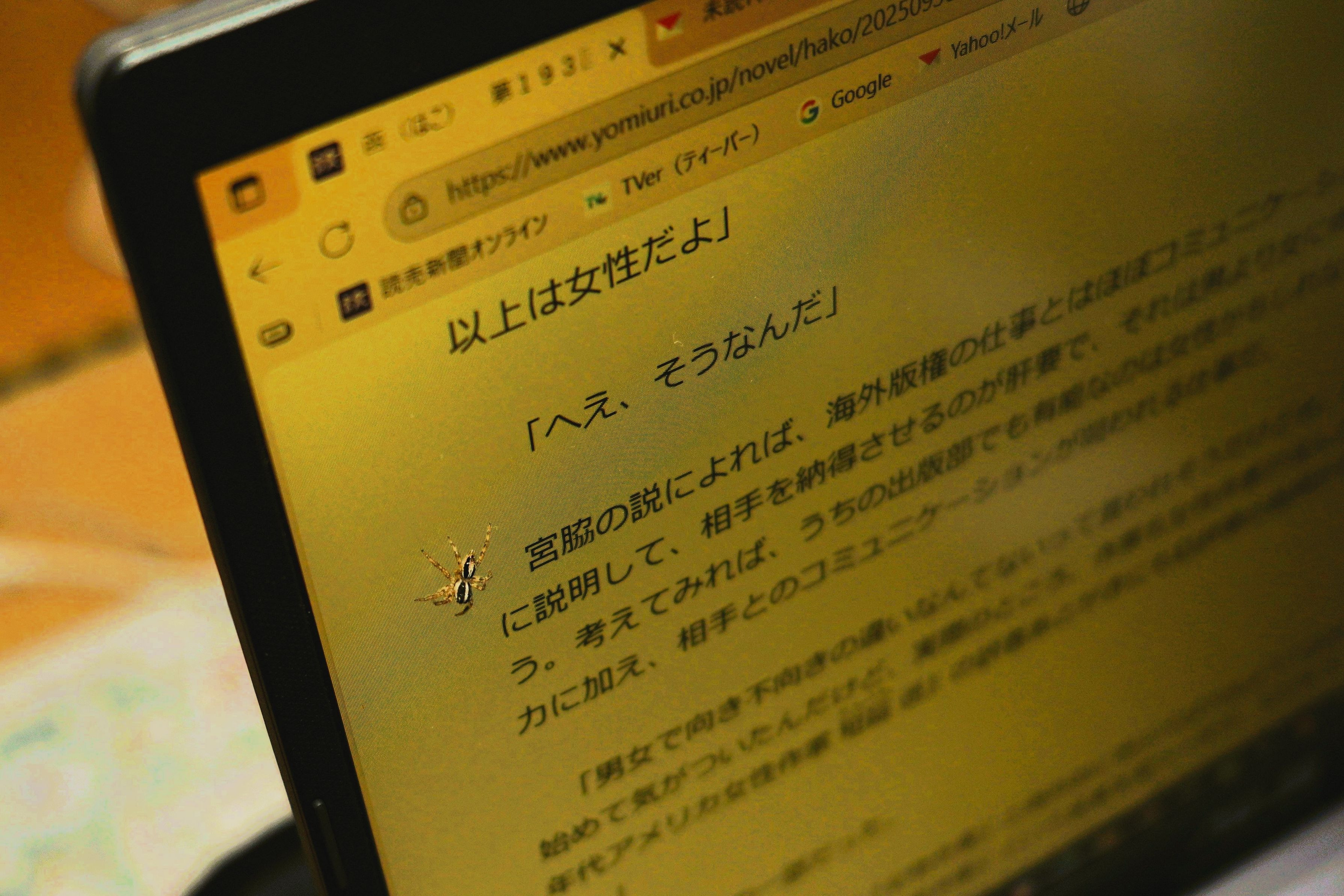 パソコンで新聞小説を読んでいたら、チャスジハエトリがディスプレーに躍り出た。