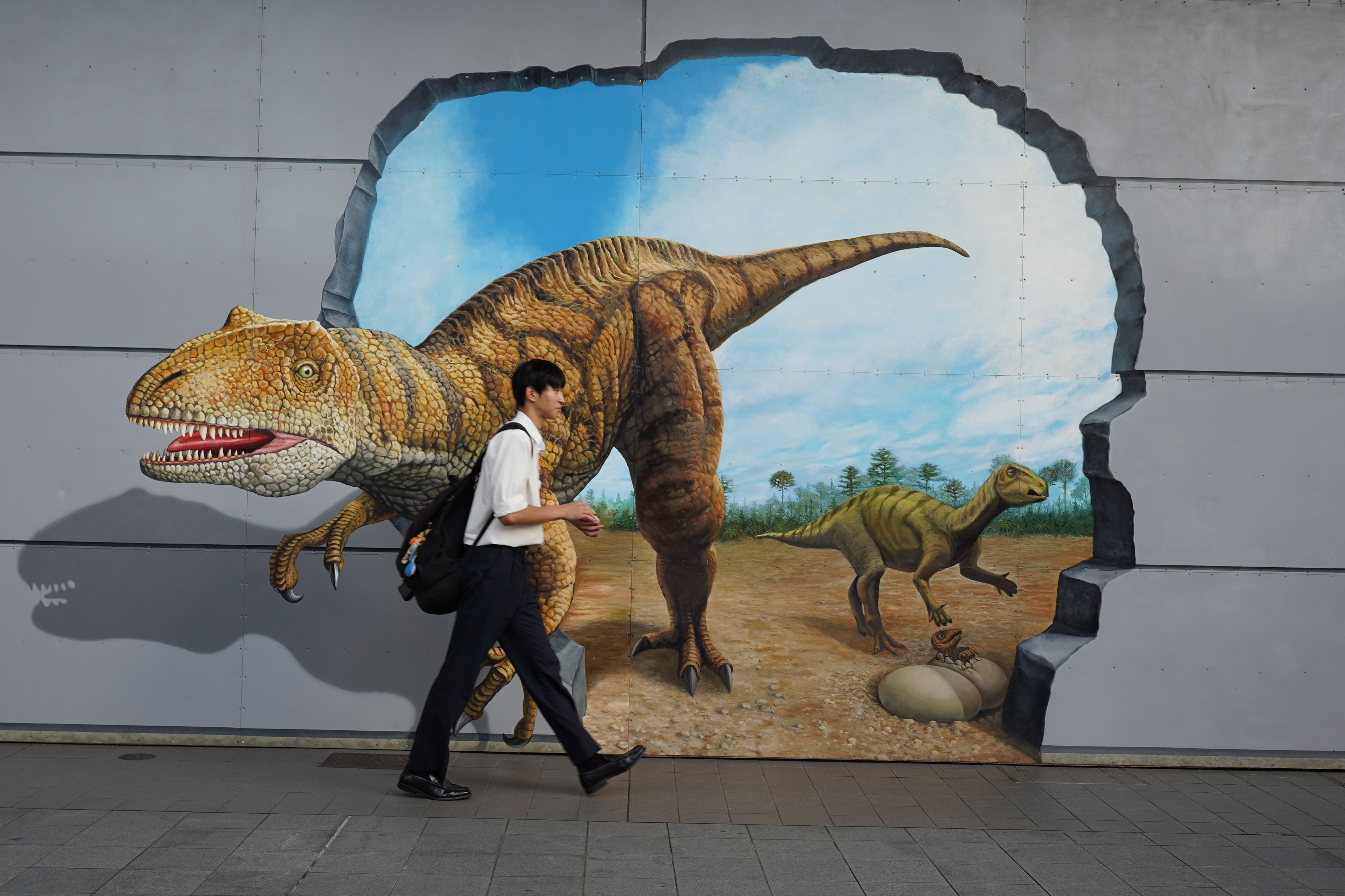 福井駅前の通路です。 壁画の出来が素晴らしいわりに通行人は無関心です。