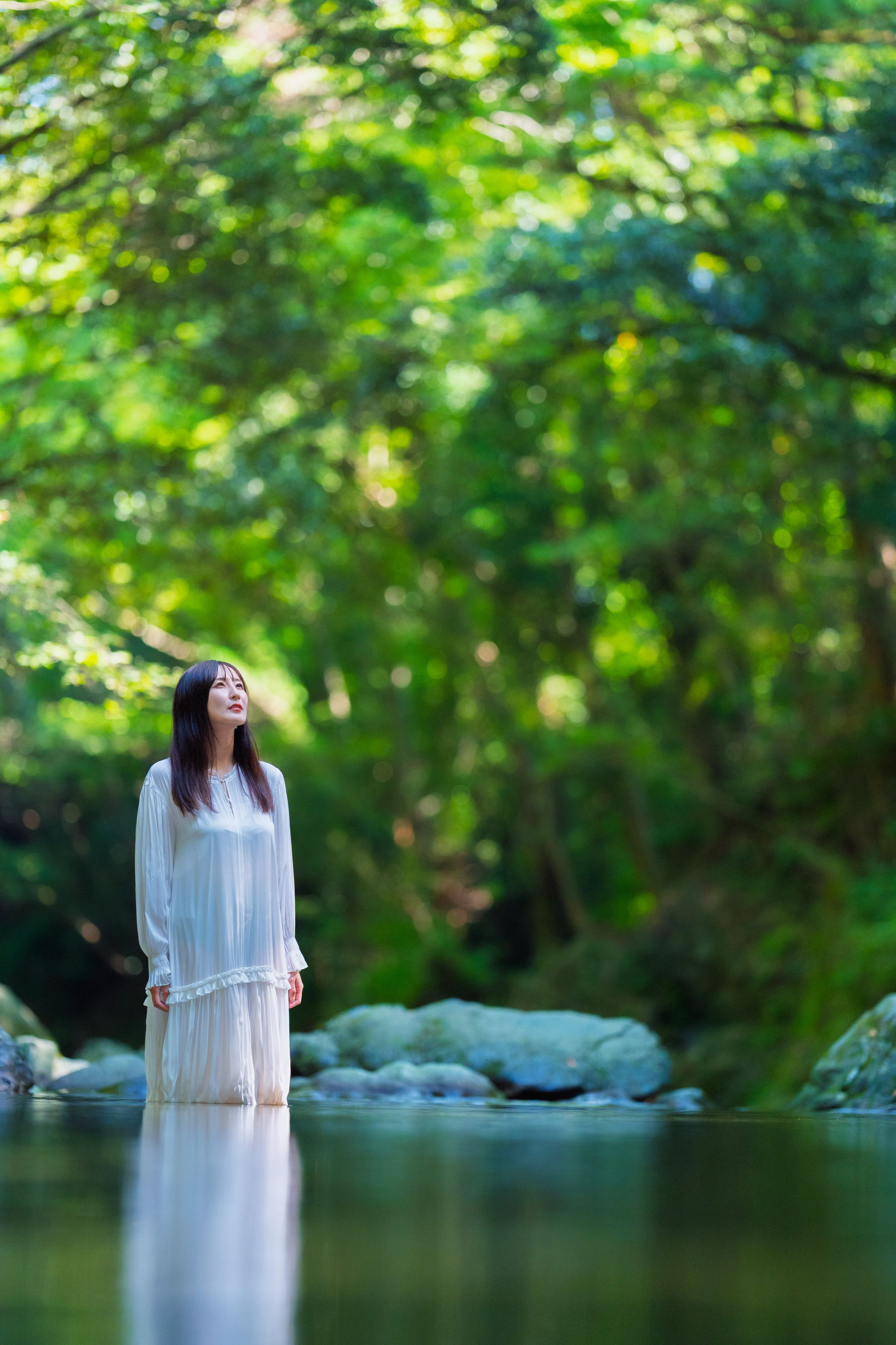 水面ギリギリから撮影する事で、水面がボケて静寂さを出す事を狙って撮影しました。