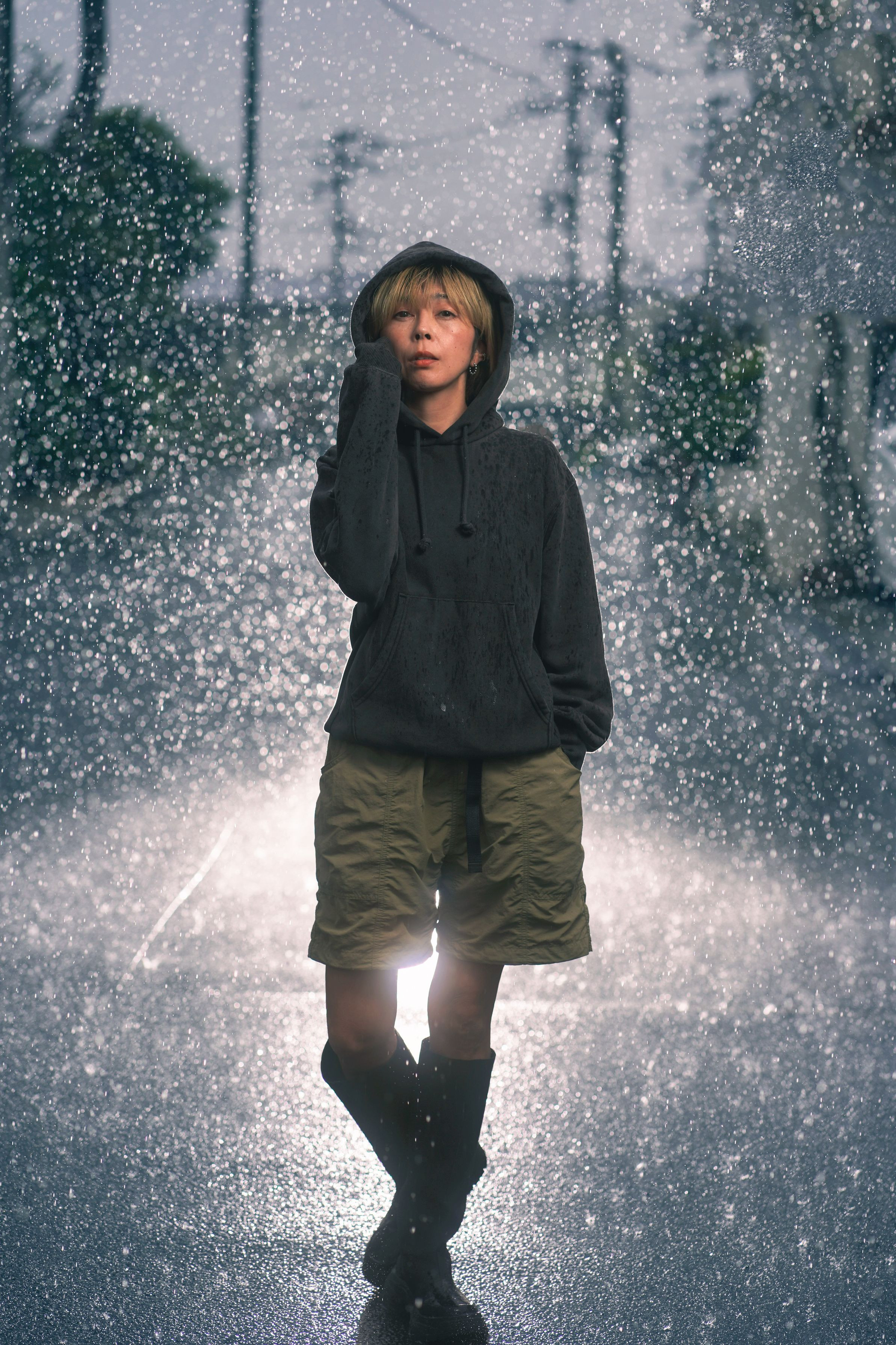 突然の雨。 撤収⁇ いいえ、 嬉々としてライトを取り出して撮影したよ!