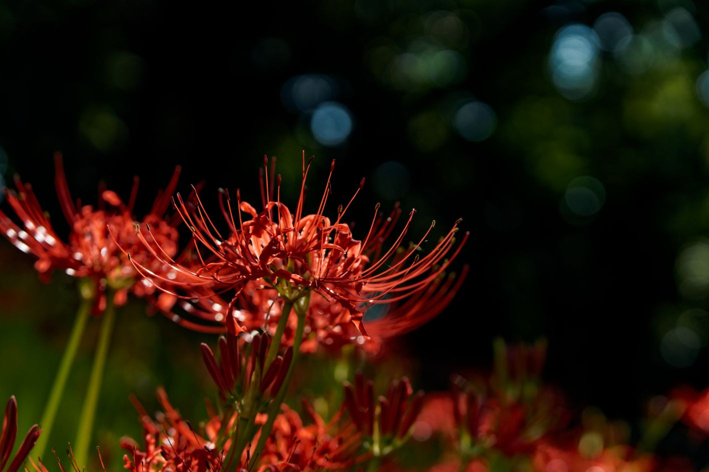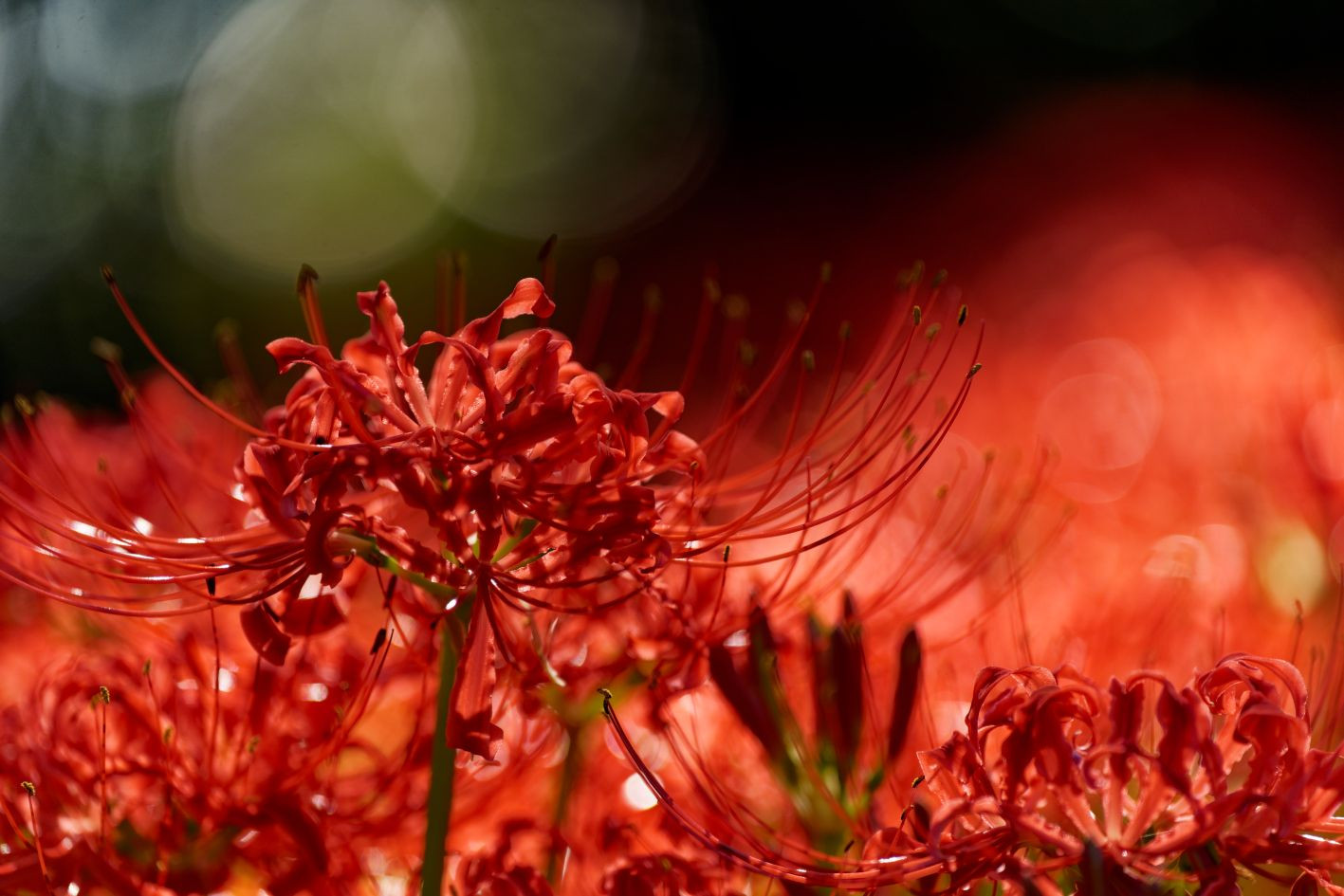 いきなり気温が下がり、待ってましたとばかり彼岸花が咲き誇りました。 撮影に嬉しい悲鳴ですね。 昨年このサイトで知りましたが 残念なことに北海道には越冬の関係で自生の彼岸花は無いそうです。
