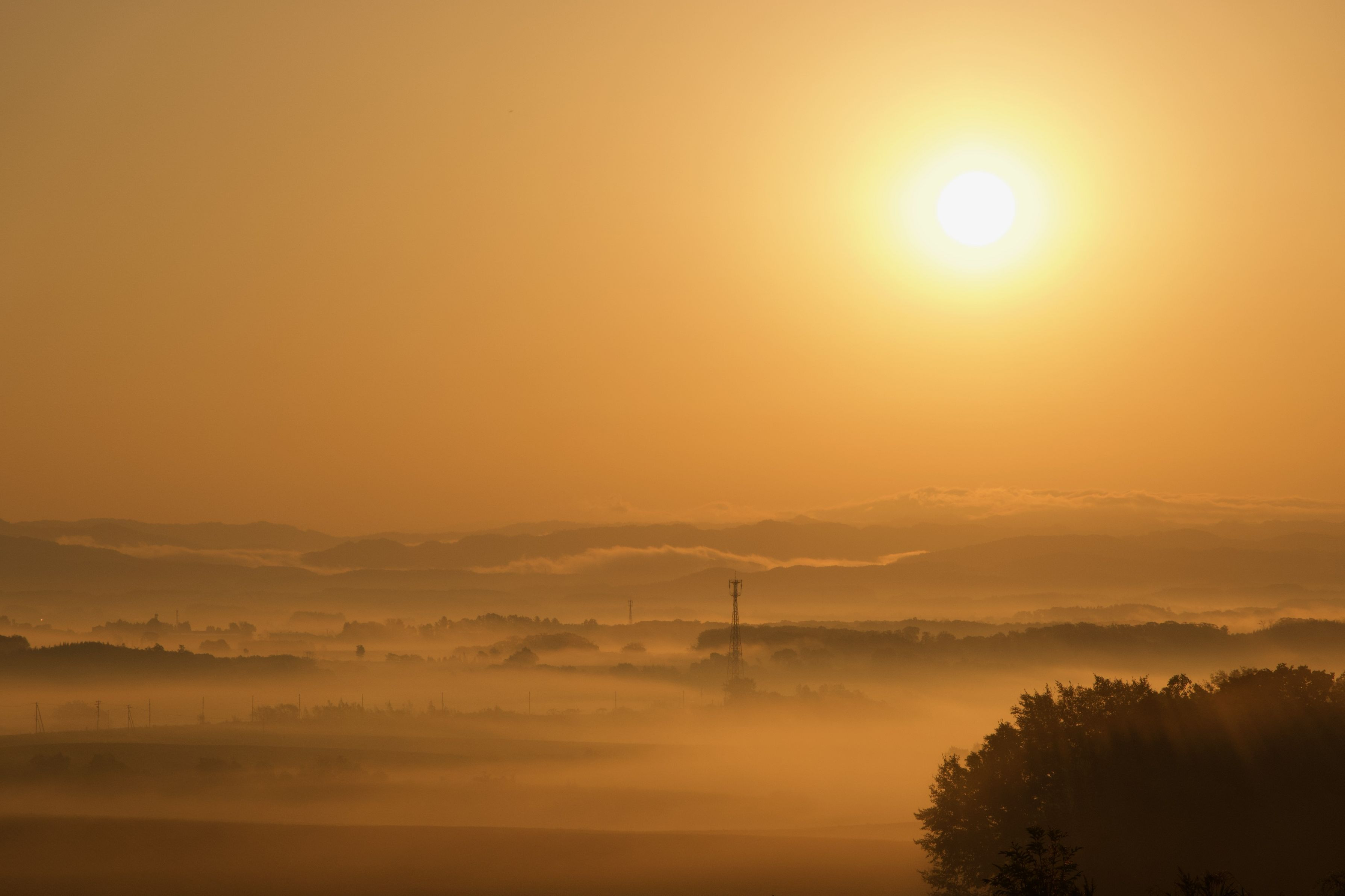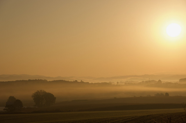 早朝の郊外で、幻想的な景色に出会いました。