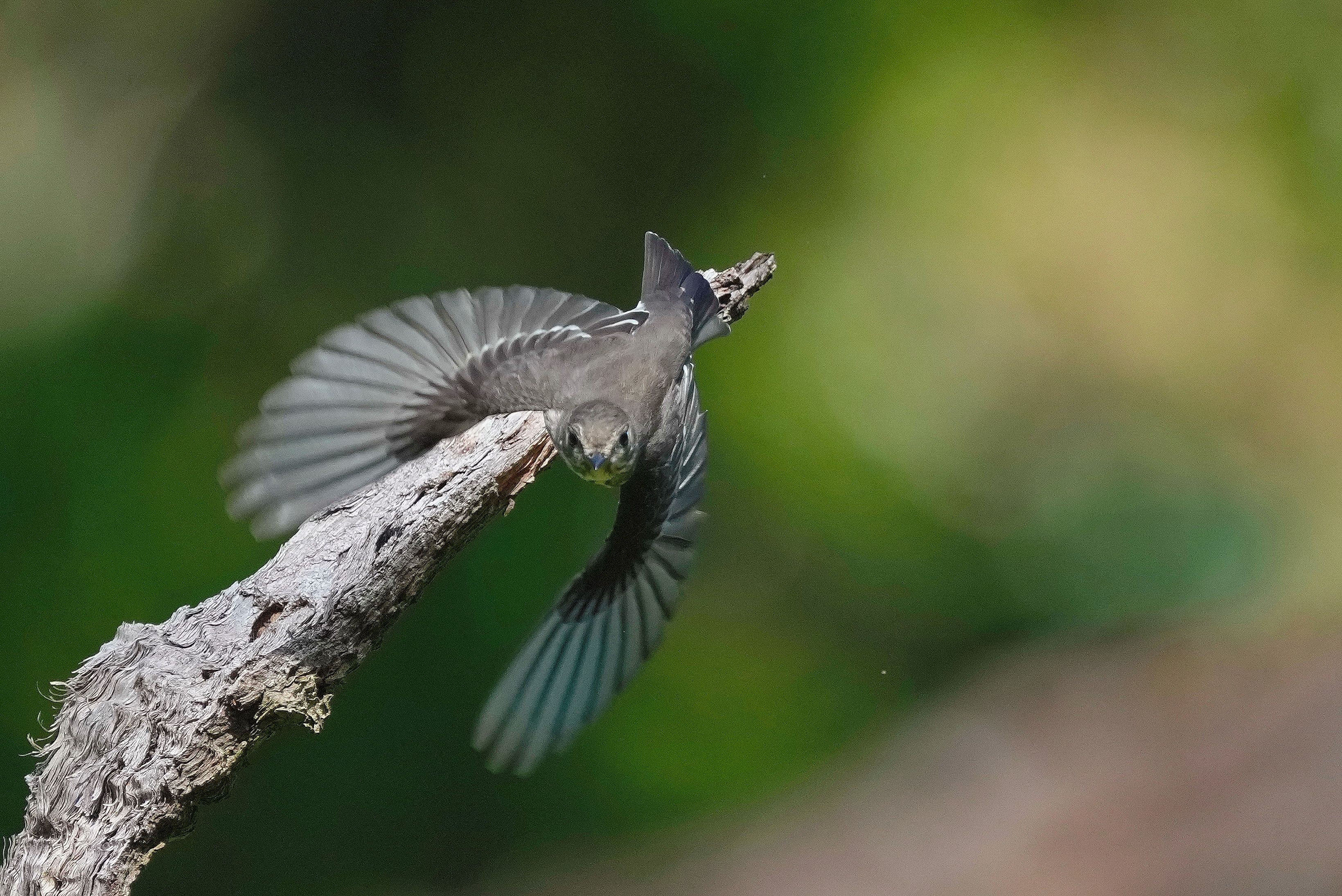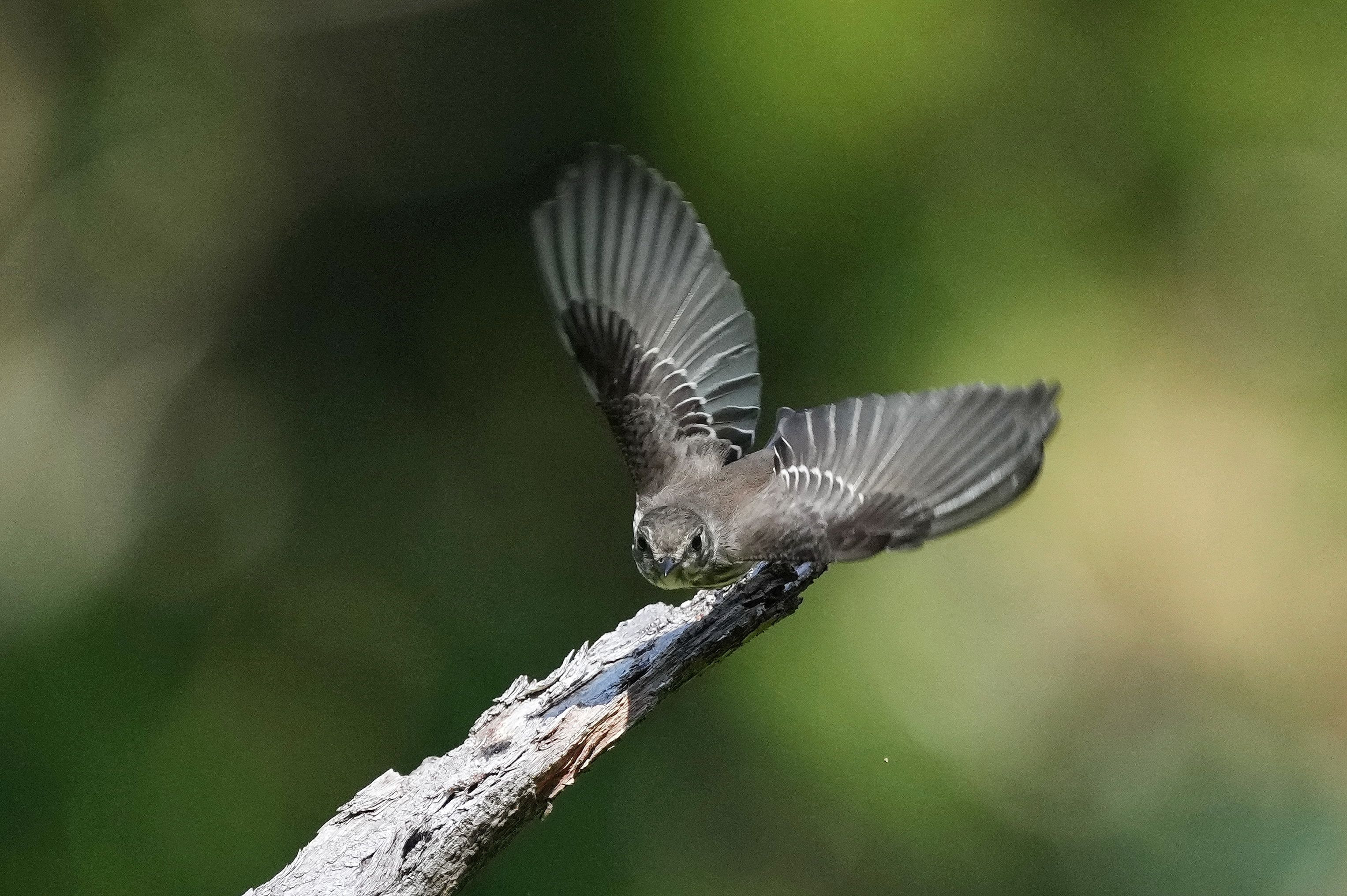 エゾビタキ、正面に飛び出した場面、①から②の順です。