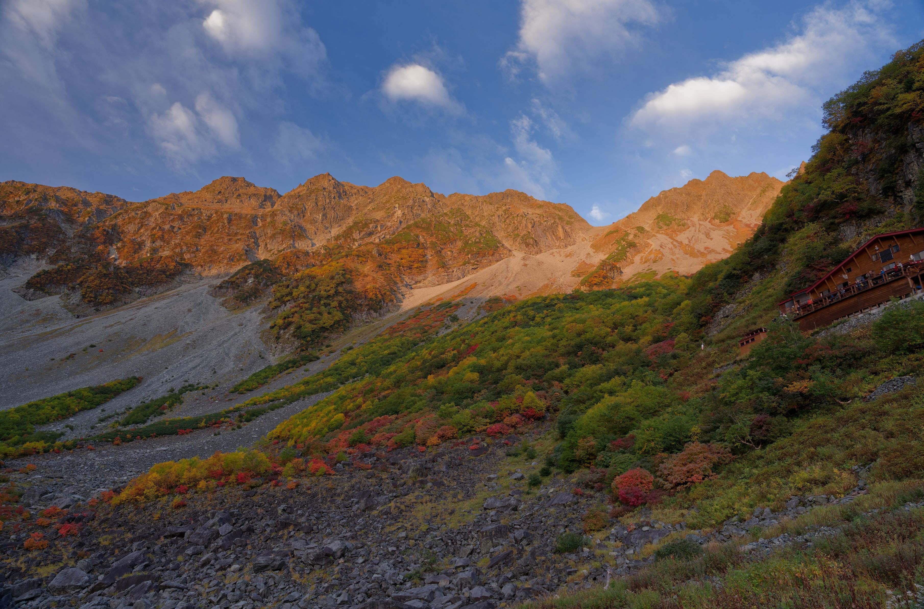 立山に輝く川