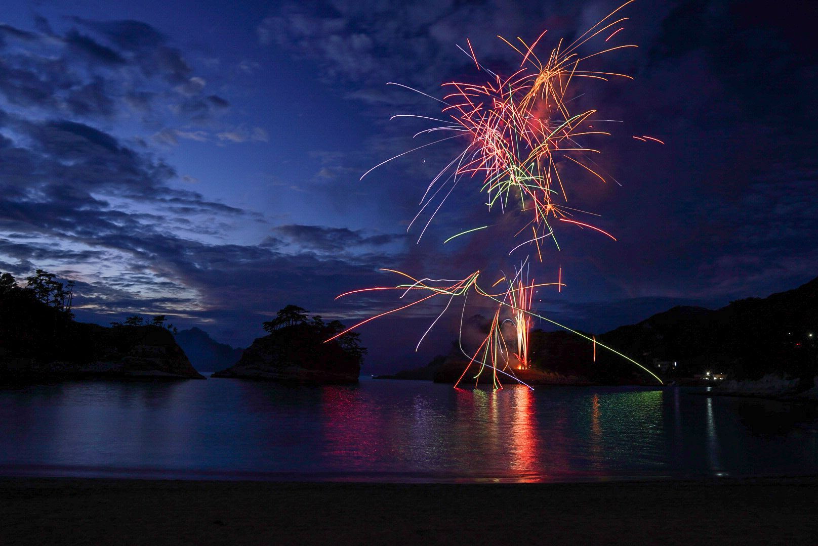 堂ヶ島夕映えの花火の最終日だったので撮りに行ってきました。 風景もしっかり撮りたくて遠目から撮影。