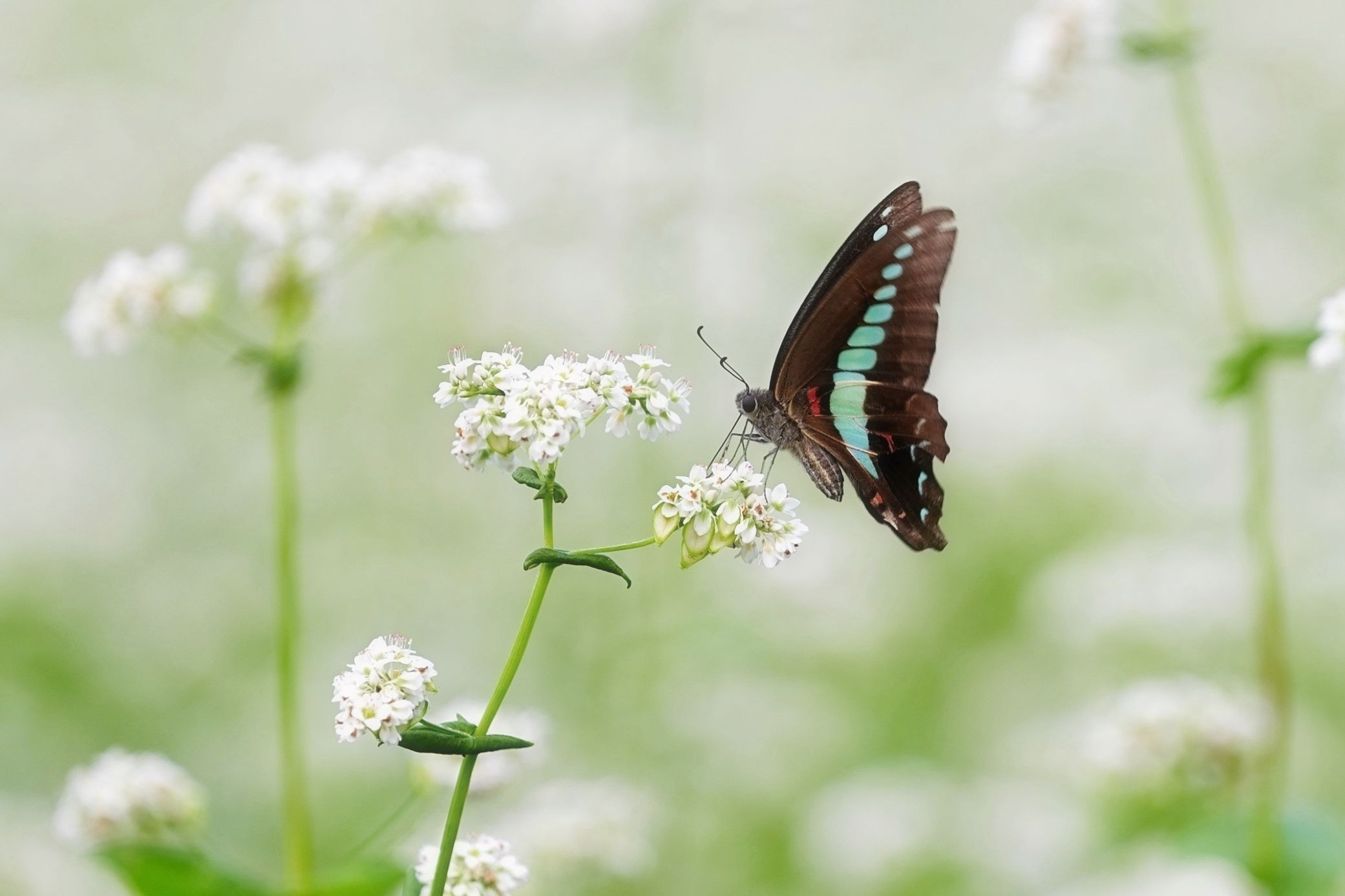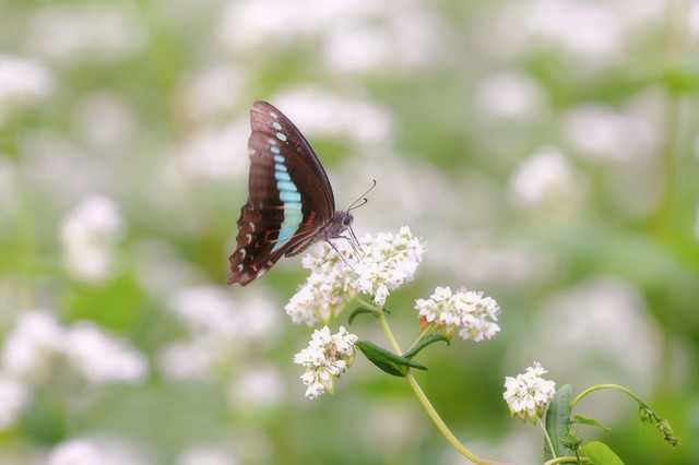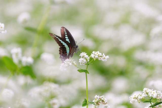 そば畑にたくさんの「アオスジアゲハ」が蜜を吸いに集まっていました。