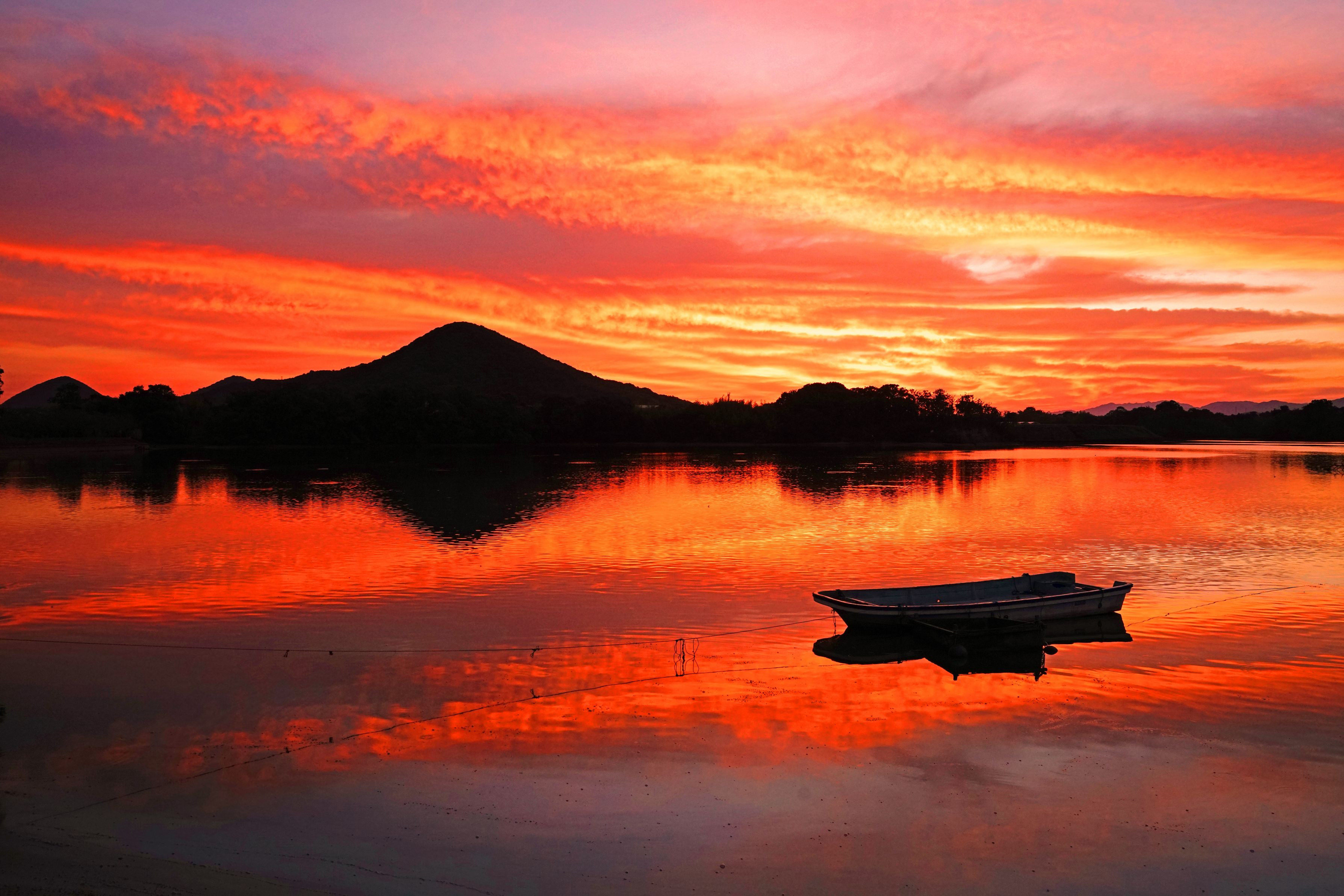 陶富士を映すため池の朝。