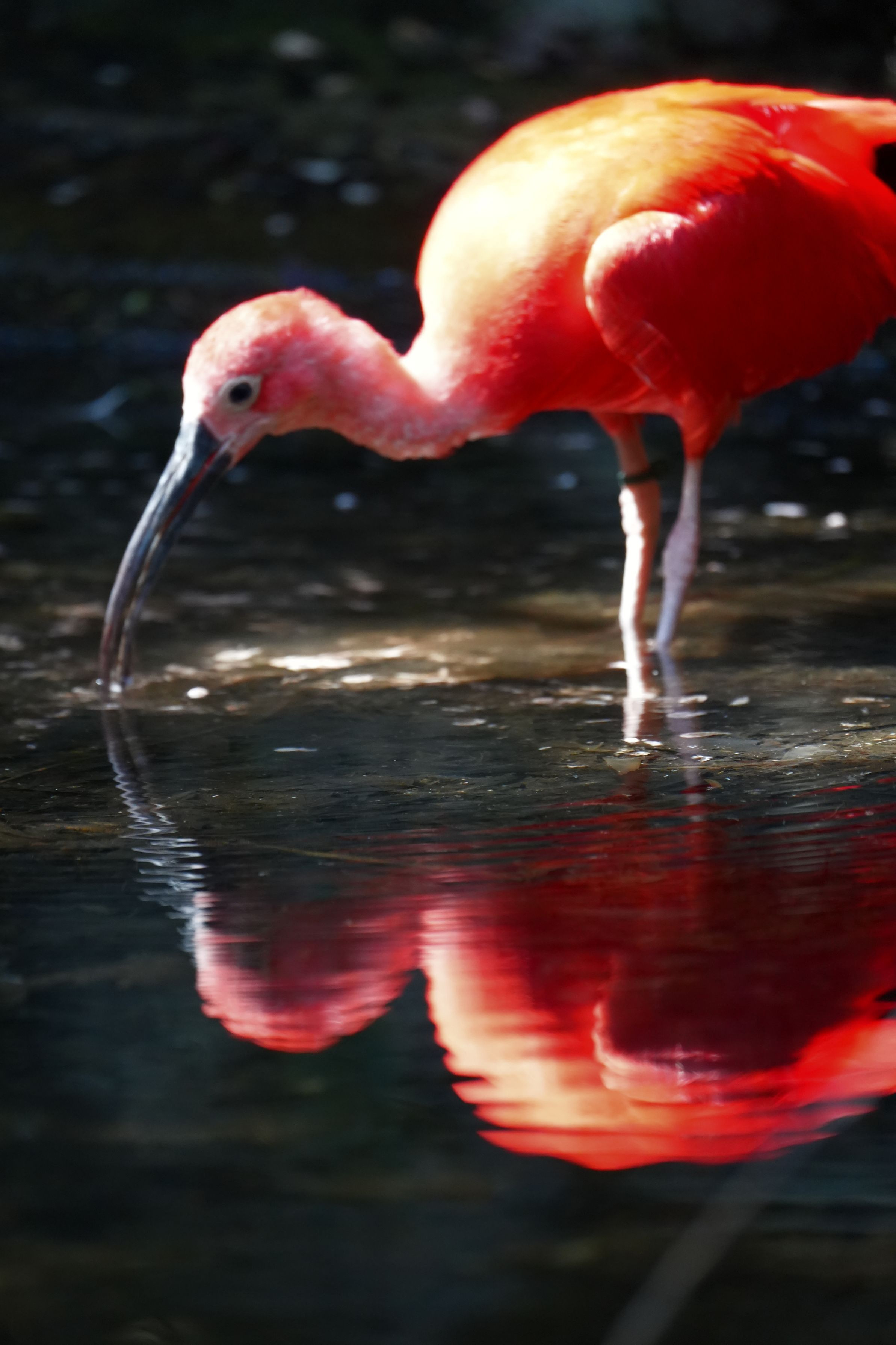 東山動物園で撮影しました。大きな金網の建物の中に放されていてちょうど水のあるところに立っていました。