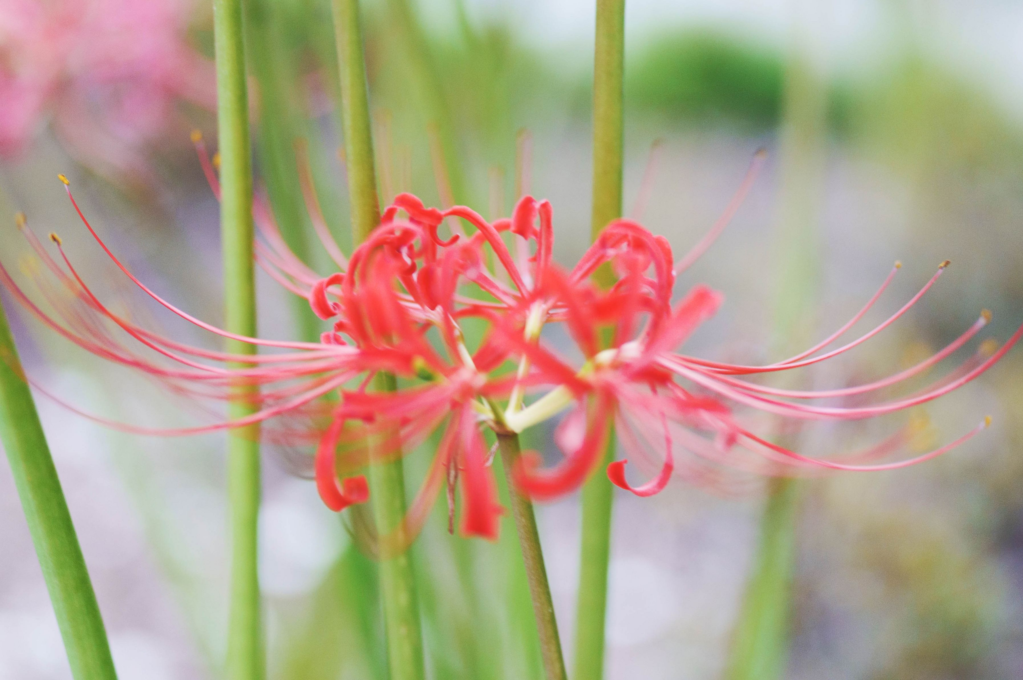 駅に歩いていったら彼岸花が咲いていました。 街中でも咲いているようです。