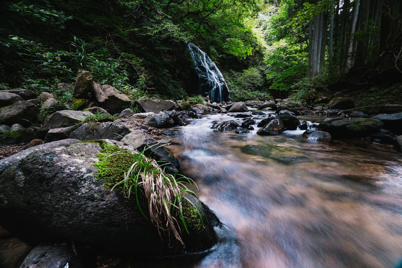 車からも近く「滝」をしっかり感じられる好きな場所の一つです。 滝から川へ流れをイメージして撮りました。