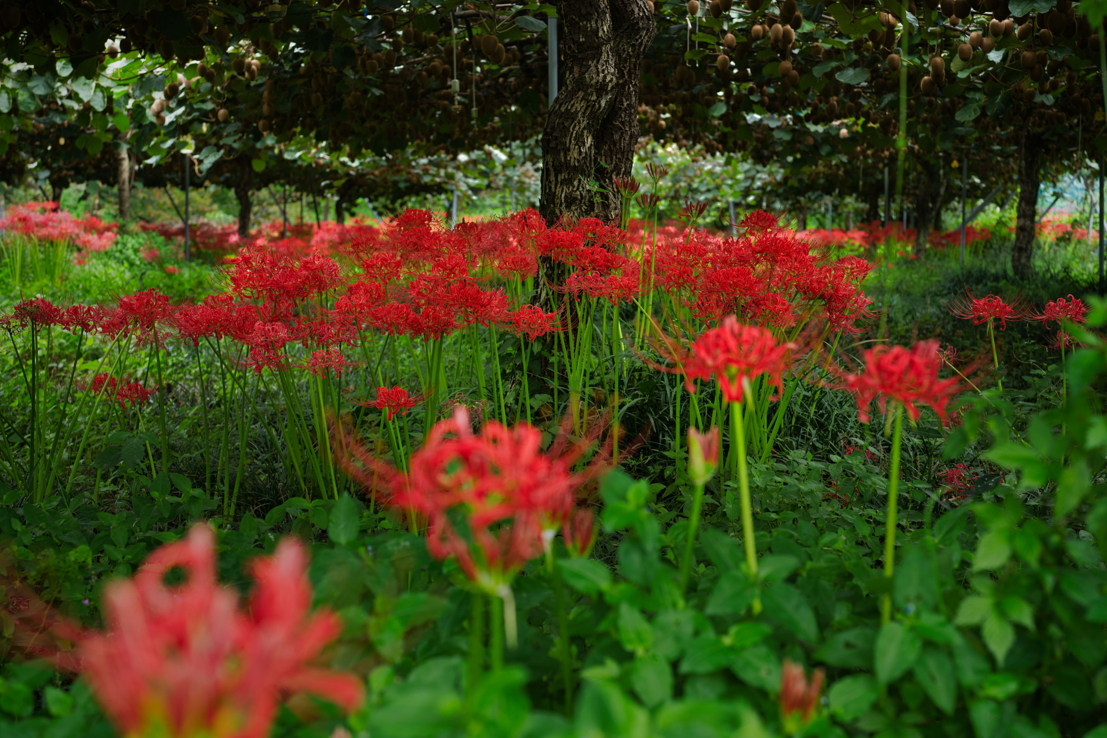 キウイ畑に赤い絵を見つけて撮った一枚。写真というより絵だと感じた。
