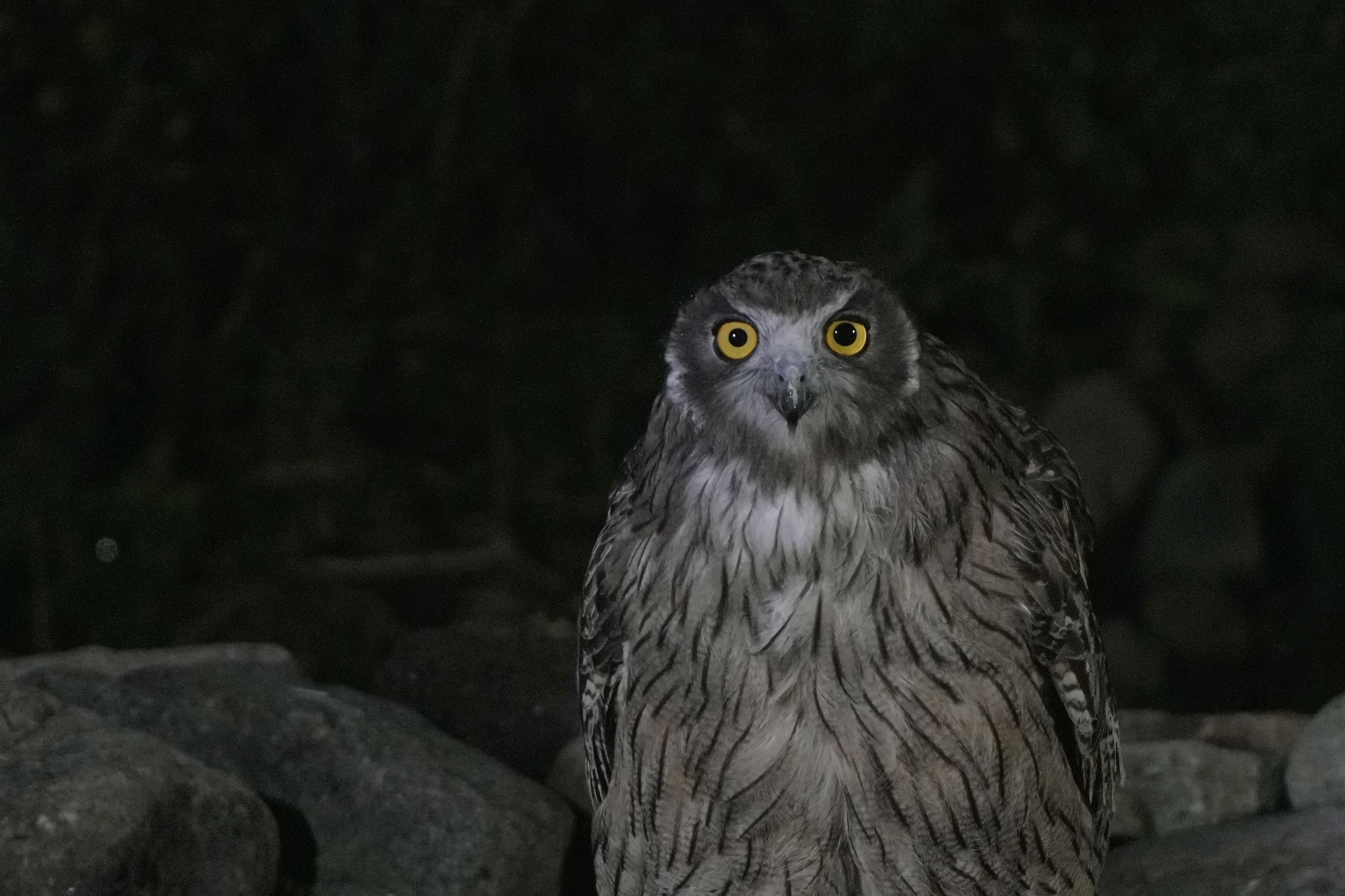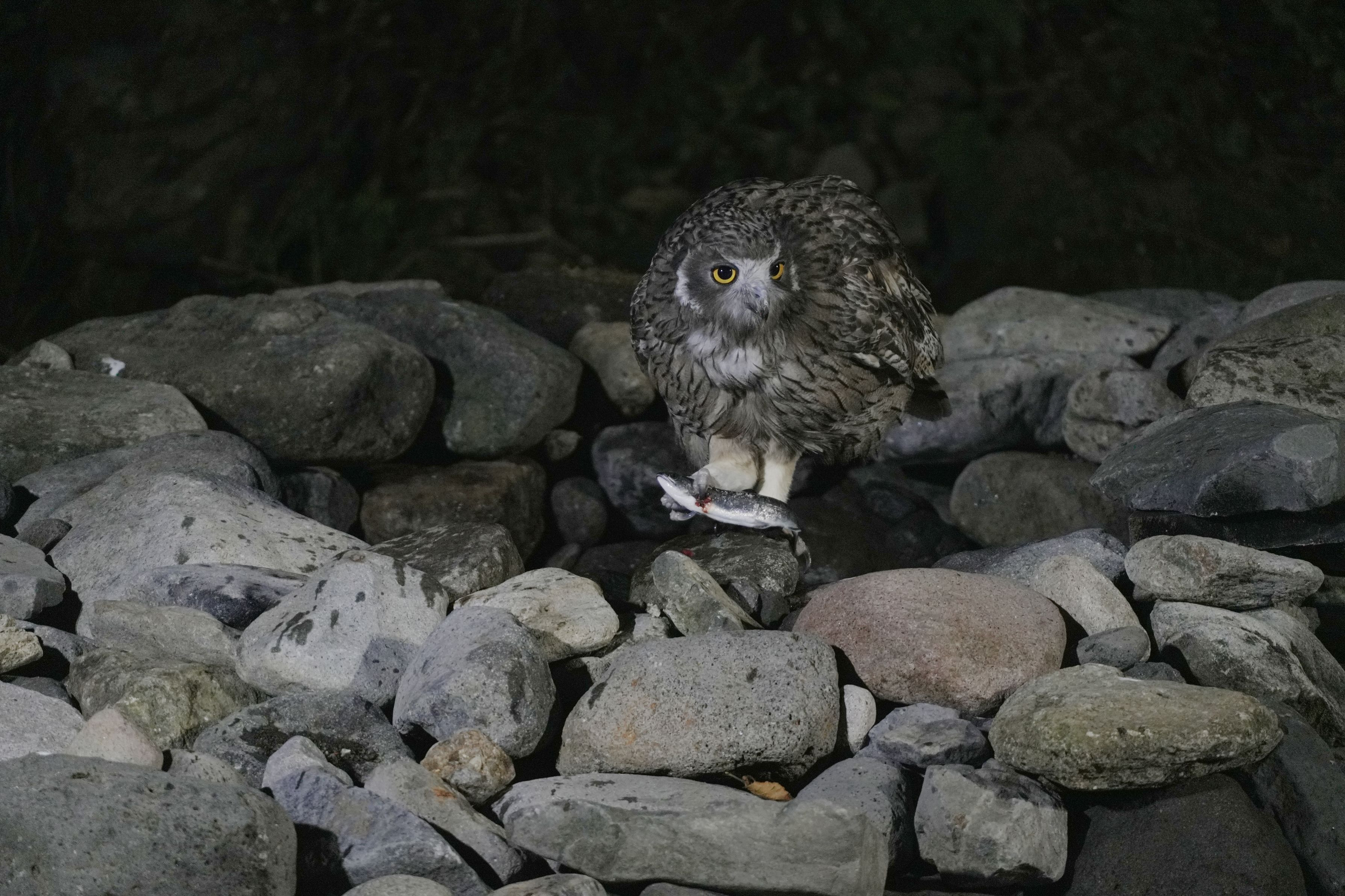 世界最大級のフクロウのシマフクロウを撮影しました。北海道に約140羽ほどしか生息しておらず絶滅が危惧されています。民宿の部屋の中から撮影してます。行ってるときに3度ほど現れてくれました。