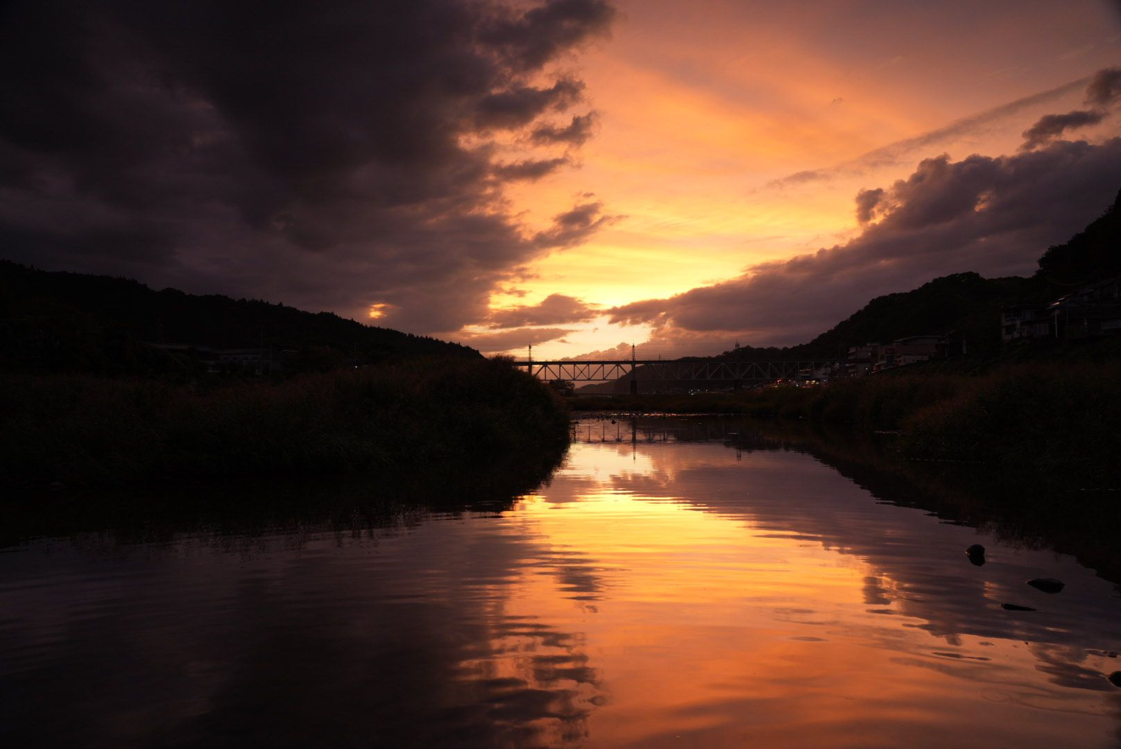 夕暮れどきから黄昏れどきへ 一日も終わり 吉野川は静寂に包まれてゆく