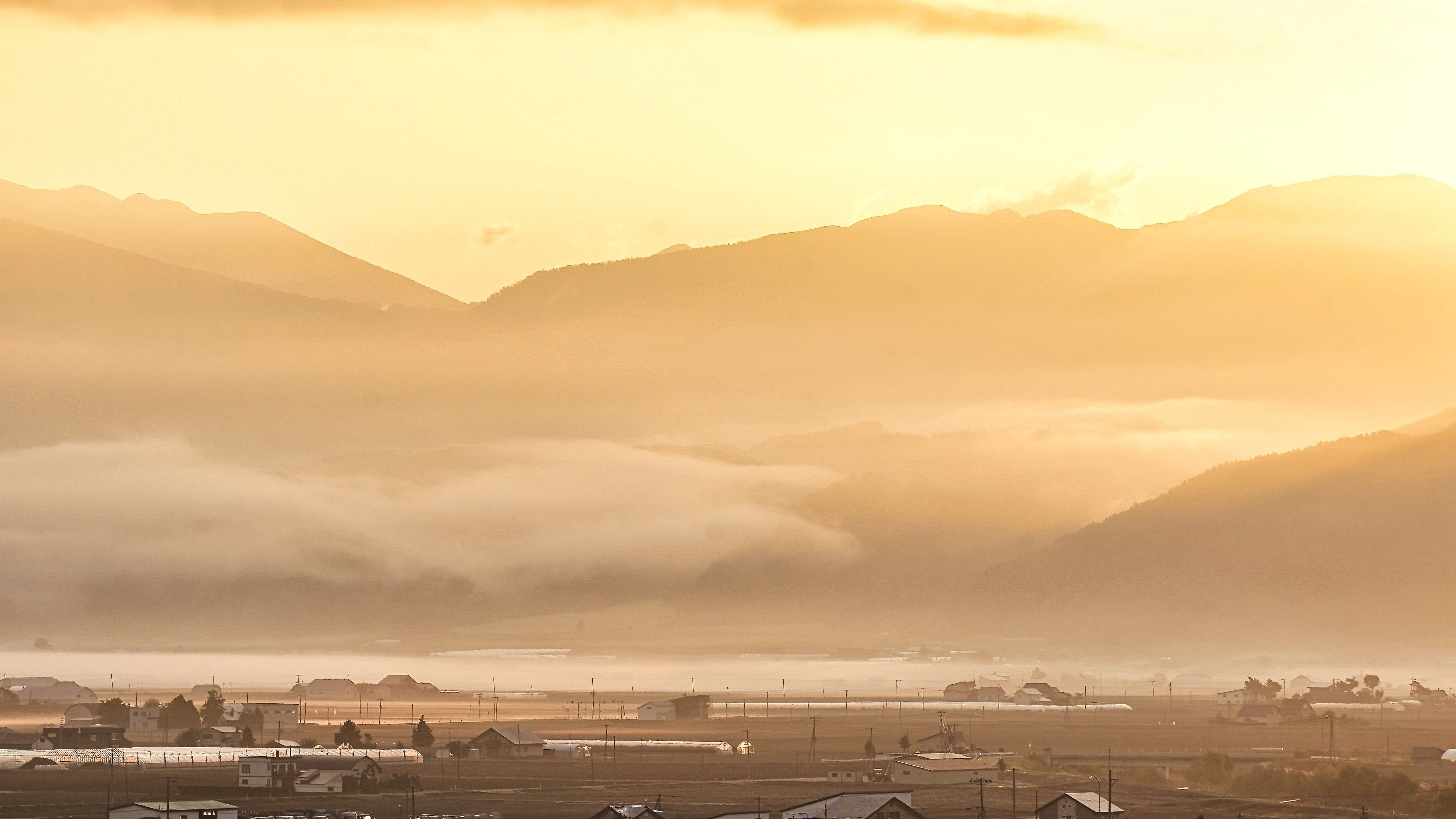 山の麓の静寂な1日の始まり