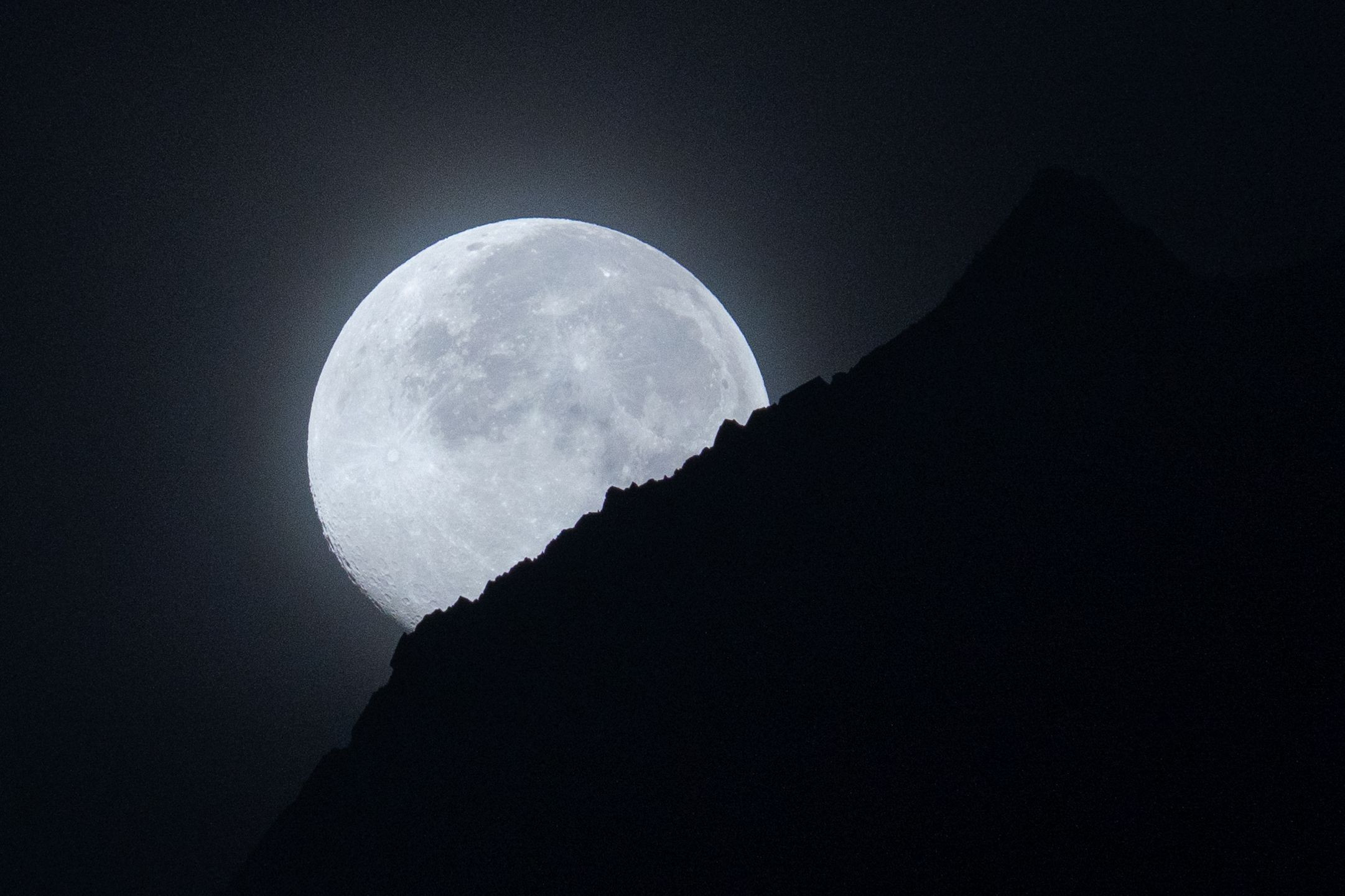 涸沢岳に沈む月の写真