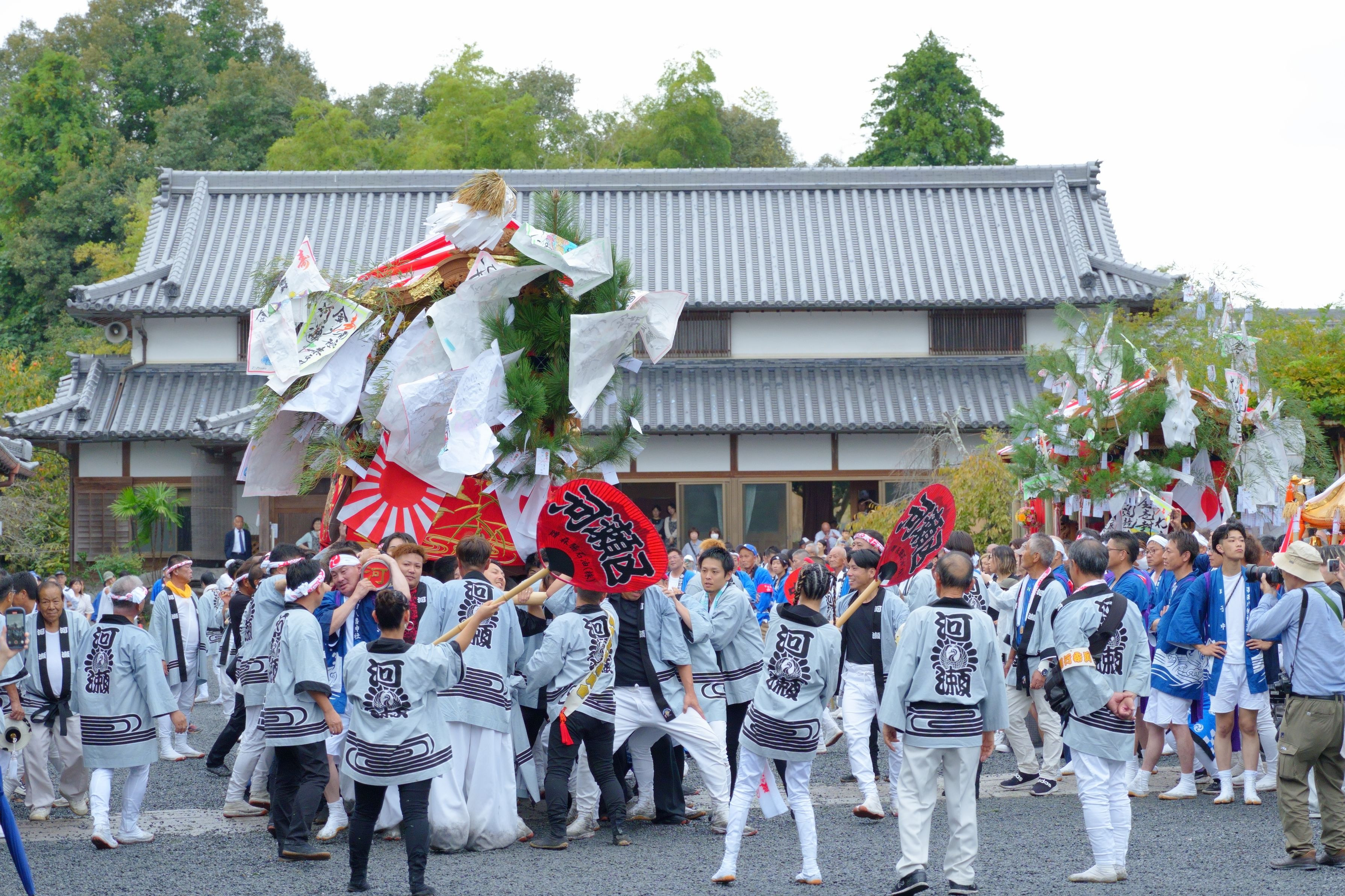 和歌山県橋本市で行われている秋祭りの模様です。 小雨降るなか一生懸命に神輿をかついでいました。