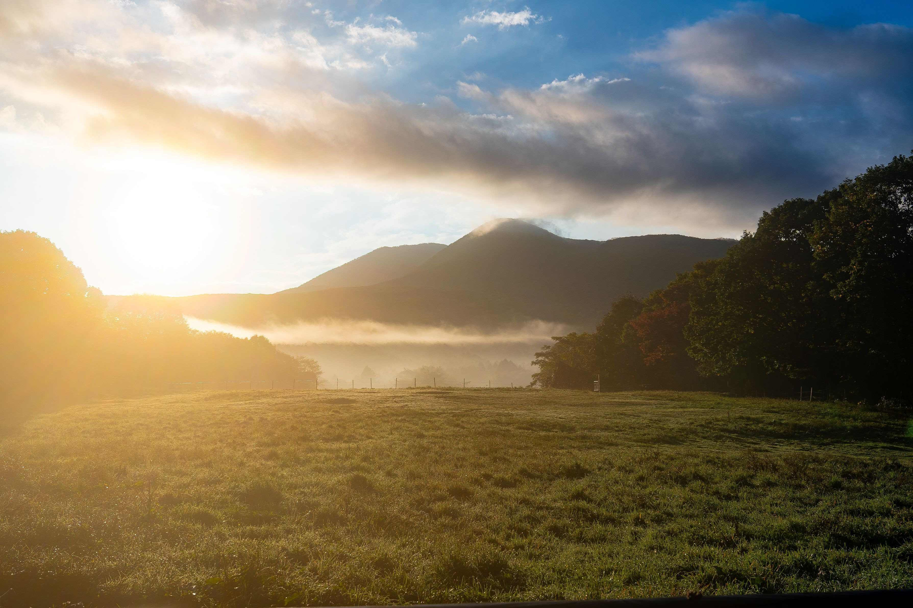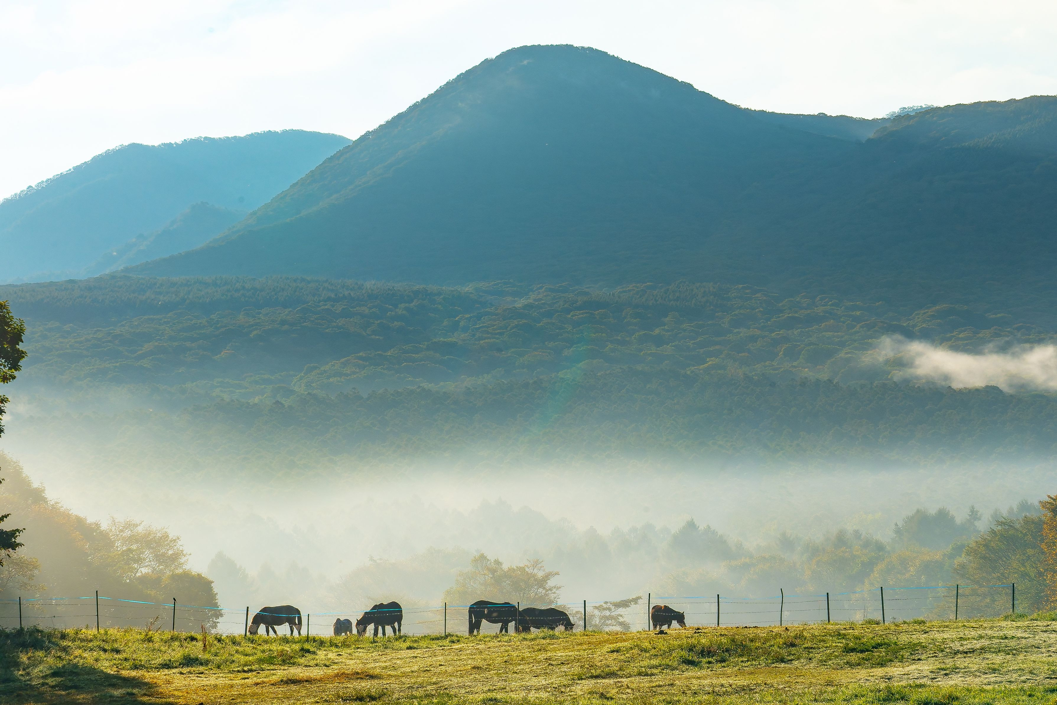 昨日は一日中雨降り。明け方より天候回復した牧場の朝