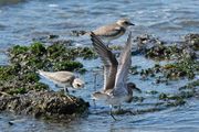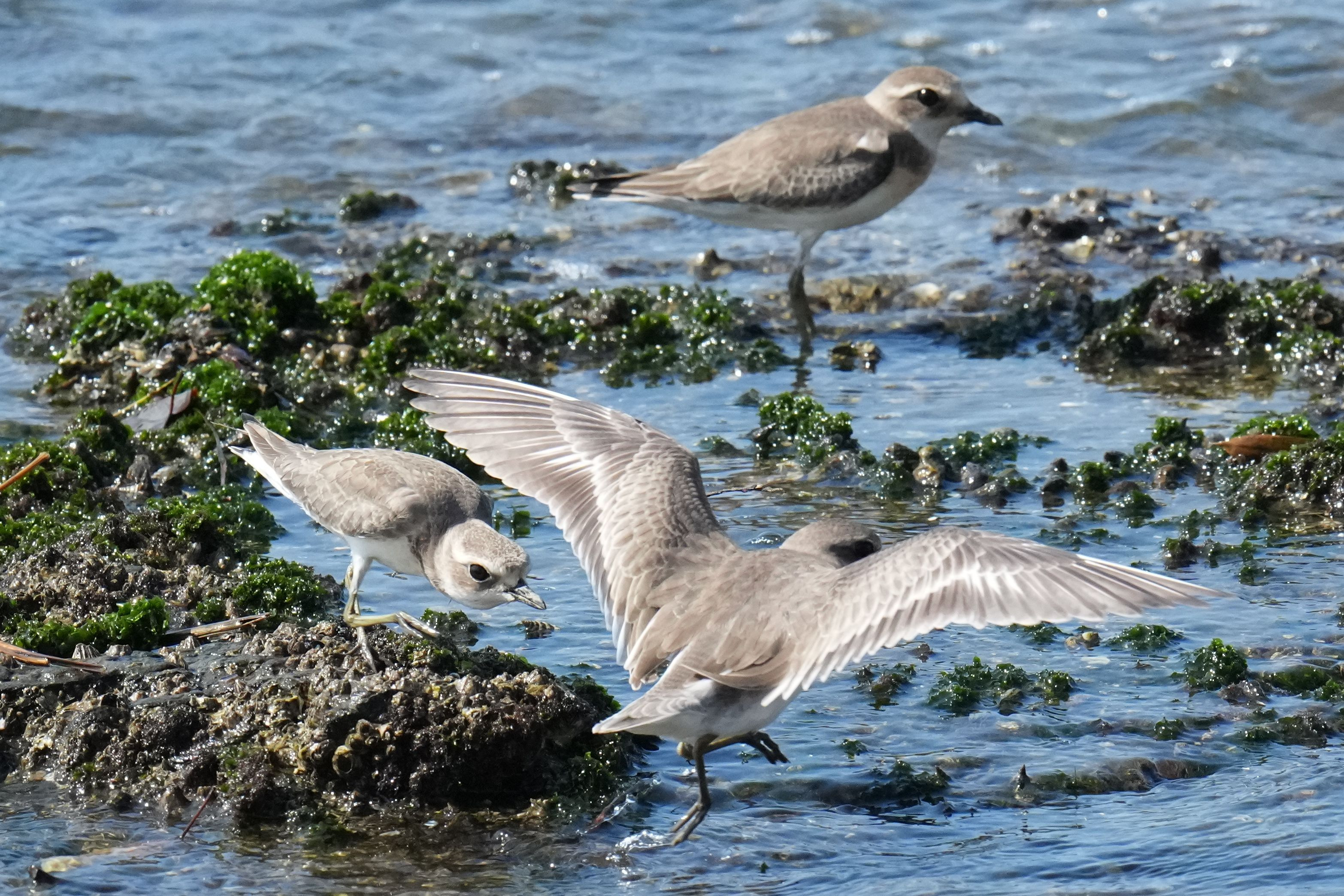 仲間内でなんとなく気が合わない場合もあって、軽い勢力争いに発展することもあるようです。何気ない内部の争いで他の鳥も取り合わないでいます。 #メダイチドリ#