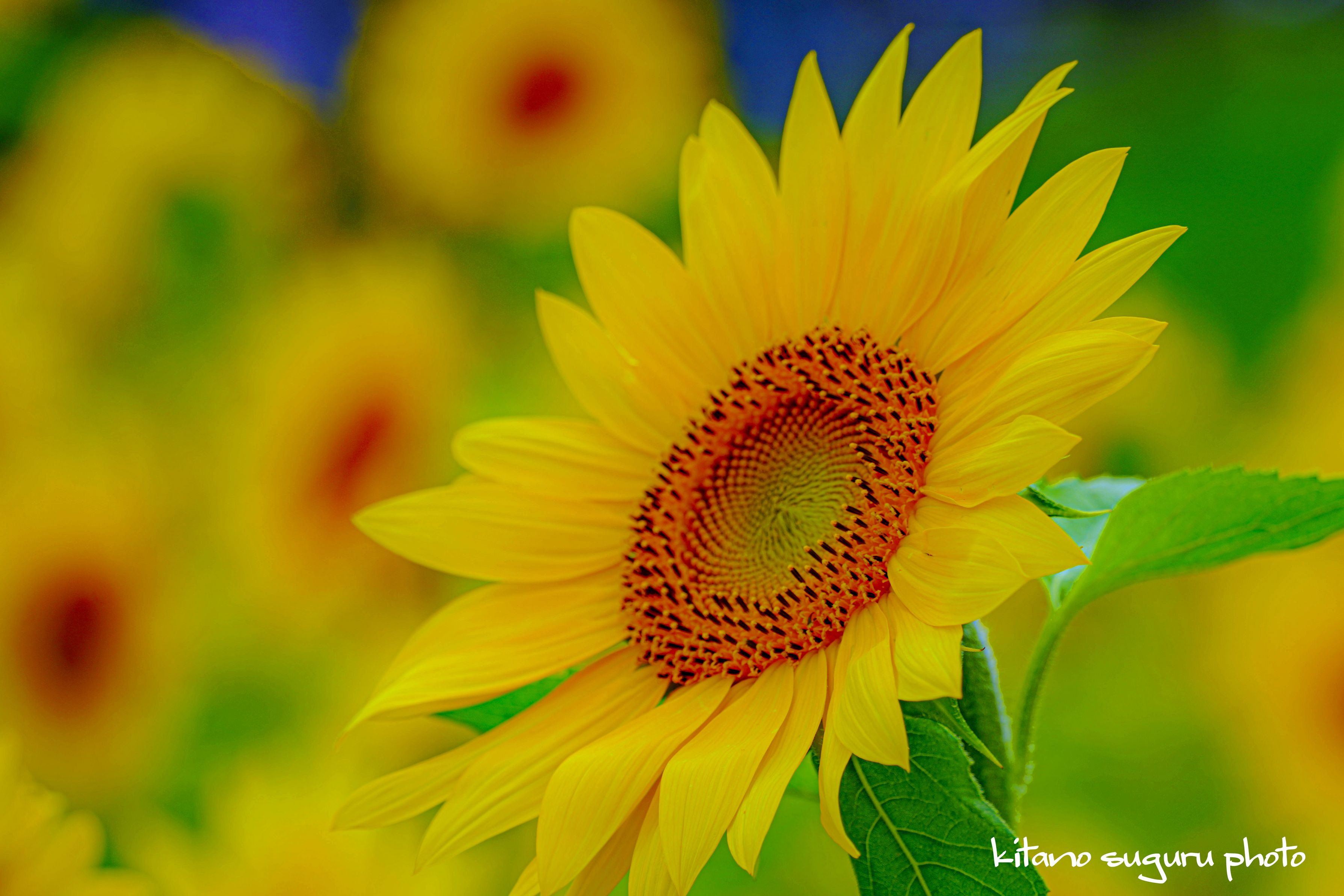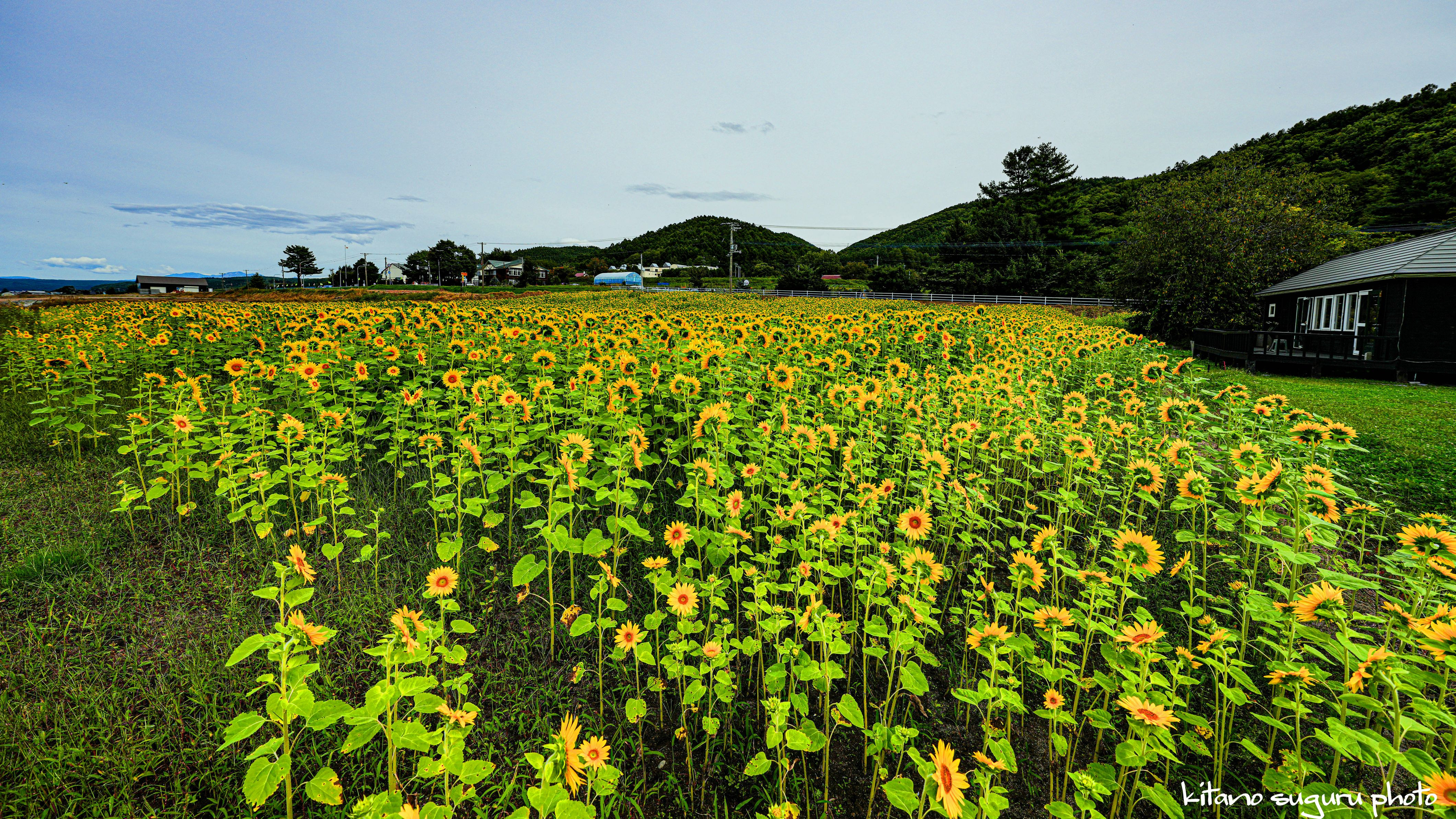 ここは鳥沼公園の傍にあるフラノバーガ店のひまわり畑で撮りました。 まだ咲いていました。
