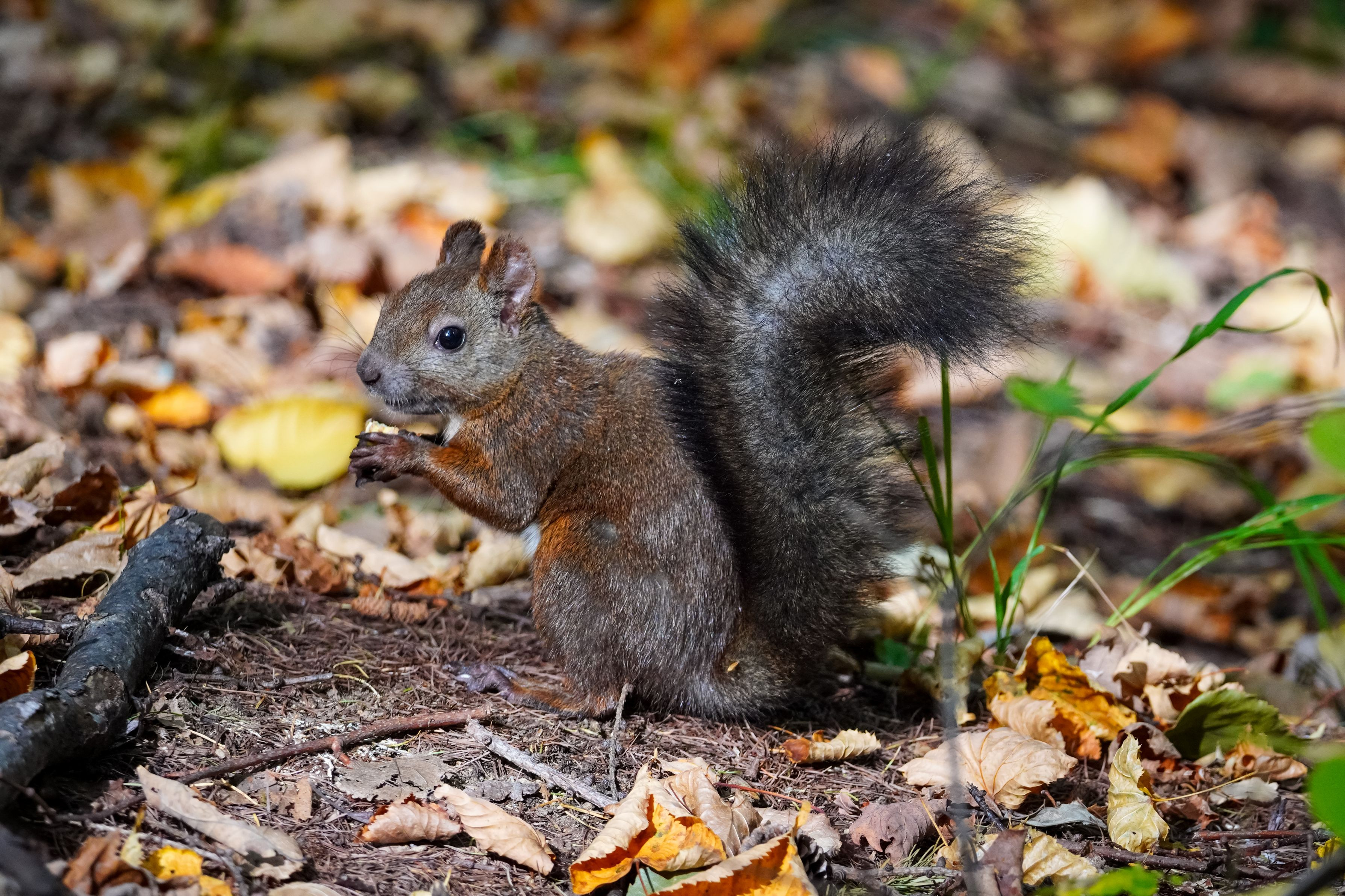 秋晴れの山へ向うと、エゾリスが側に来てくれました^^