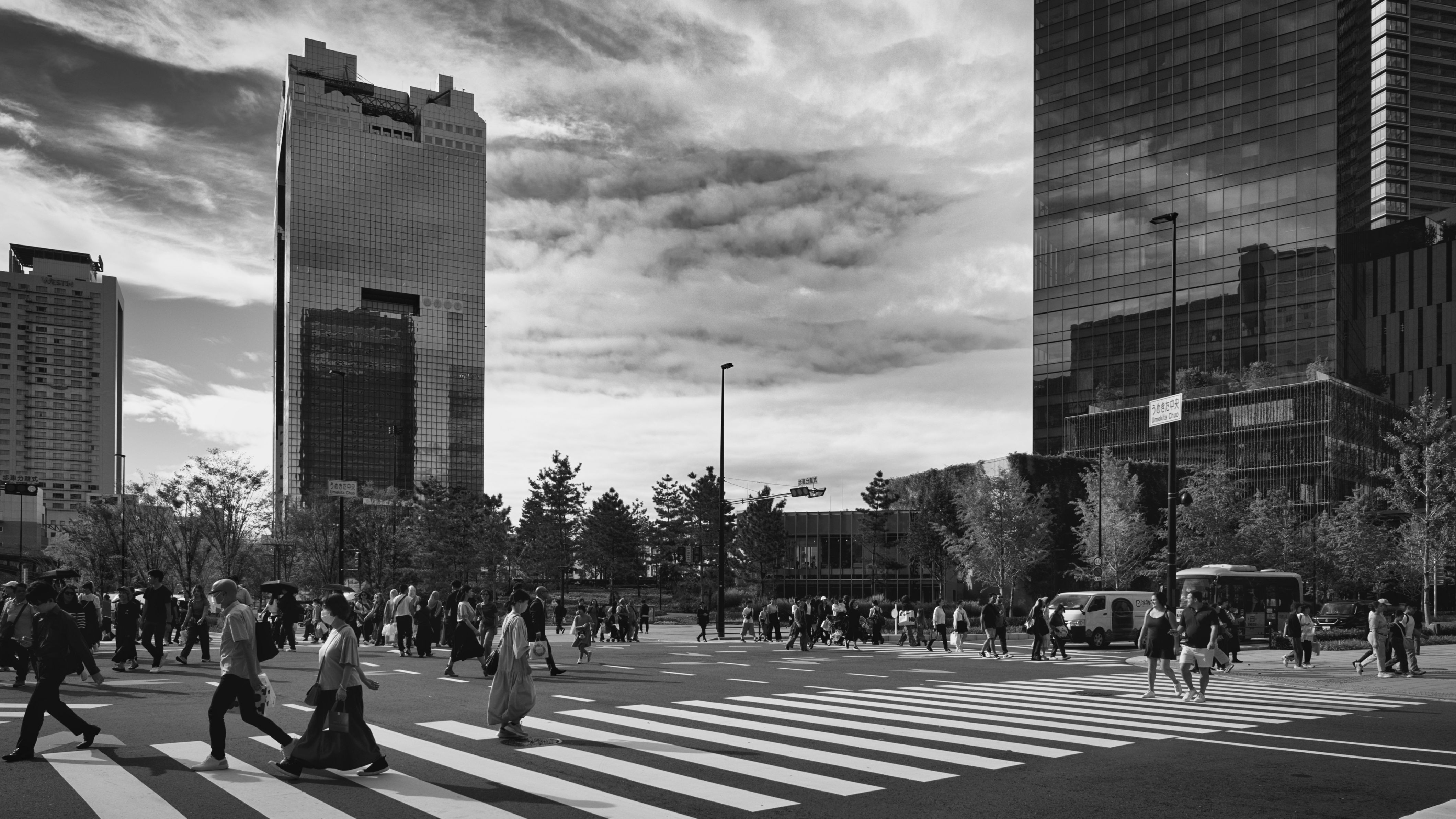都市とは、無数の名もなき存在が交差する場所。 交差点は、記憶に残らない一瞬の軌跡が重なり、消えていく舞台。 この写真は、都市の「匿名性」を肯定的に捉え、個が群れに溶ける美しさ、 そしてその中に潜む構造・沈黙・記憶の断片をモノクロ写真で描き出します。 α7CII + FE 24-70mm F2.8 GMII #大阪府# 撮影地:大阪府大阪市北区