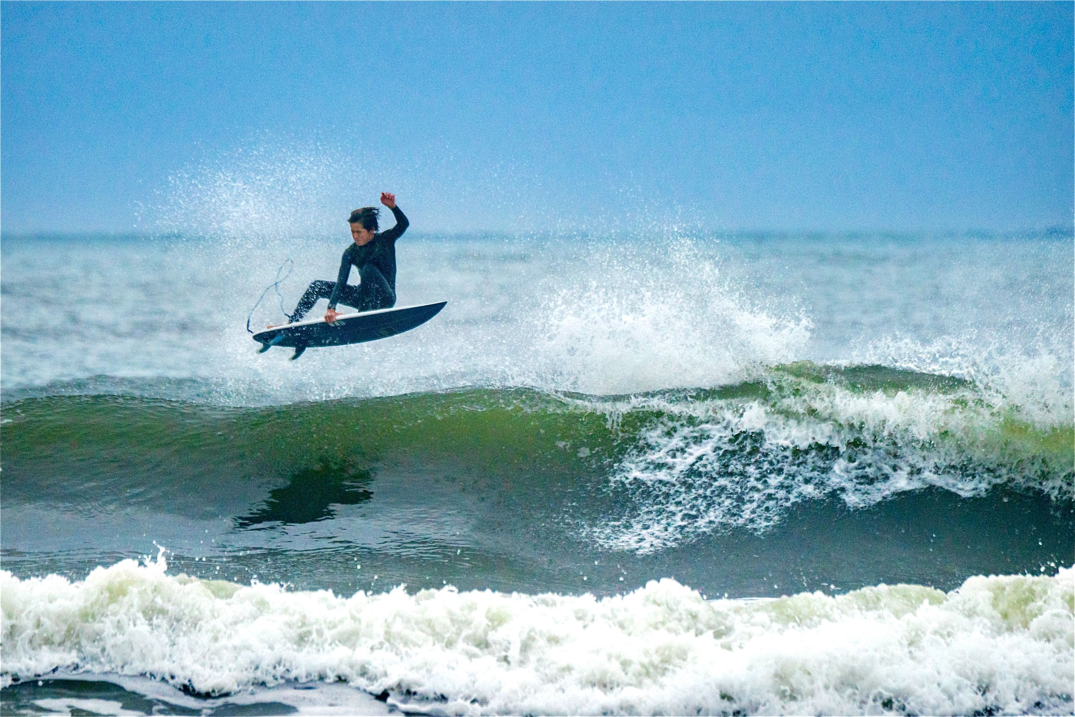波面に映るサーファーの影が印象的です