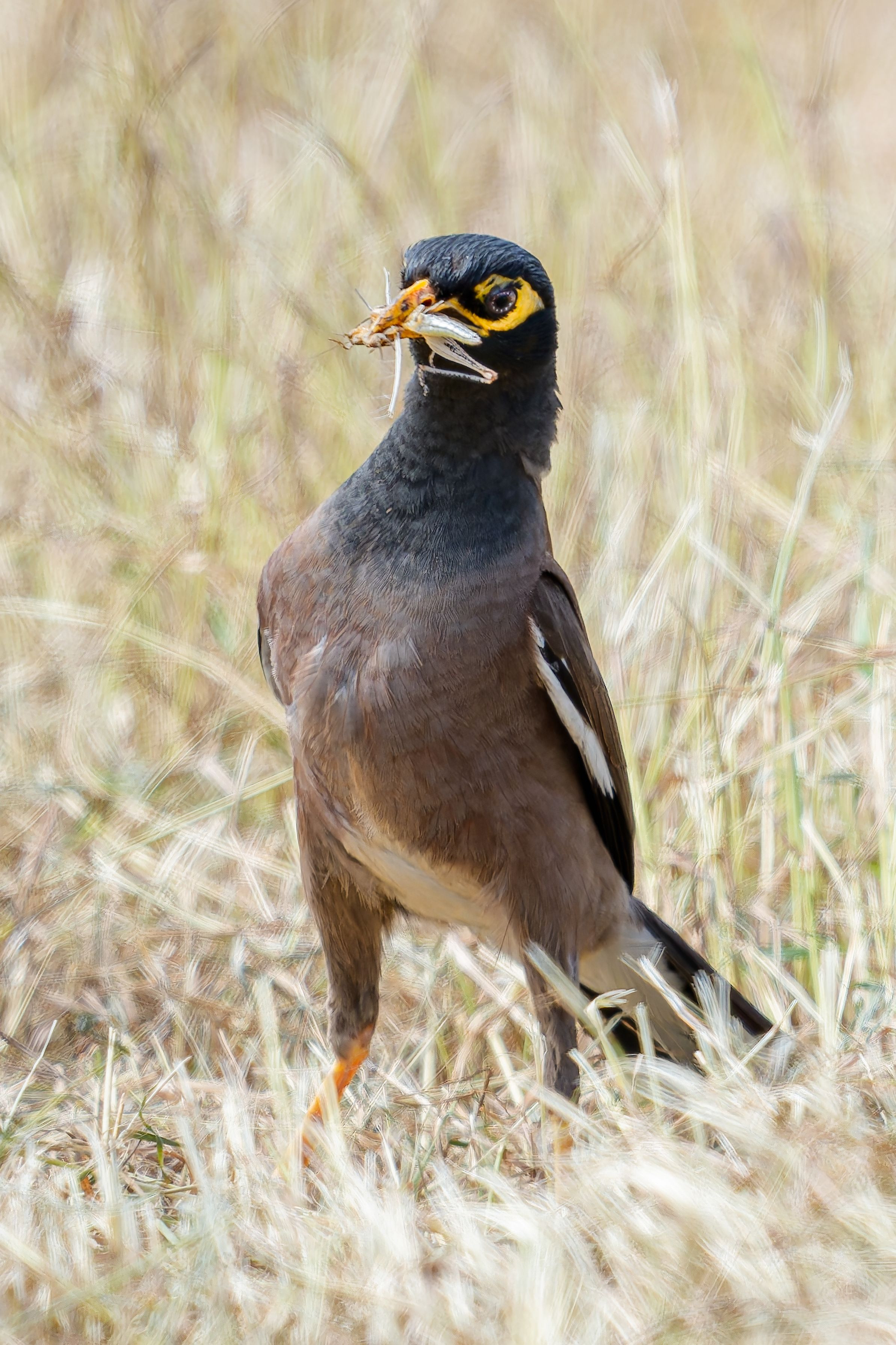 バッタを捕まえたインドハッカ