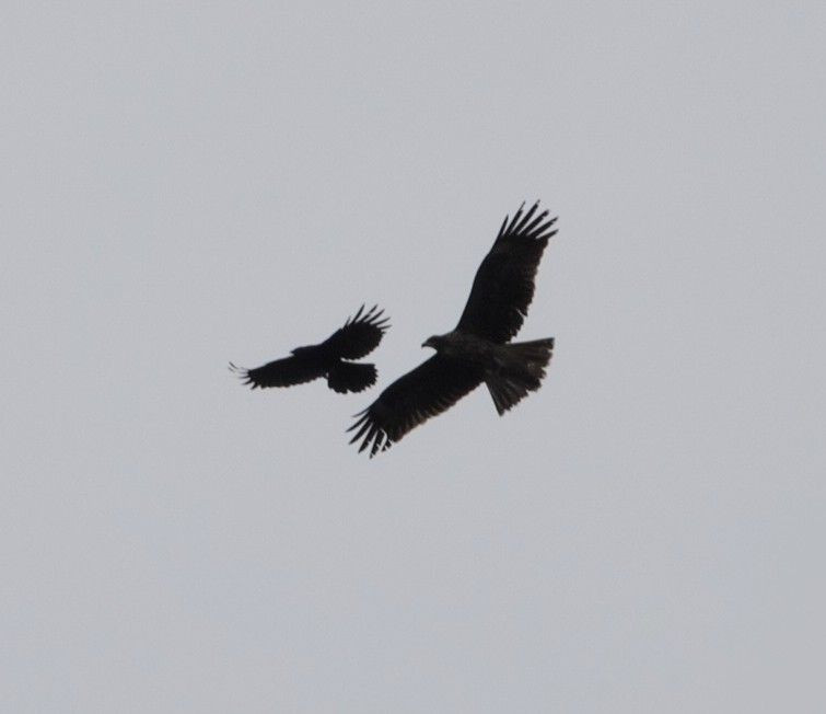 大泉緑地で、トビがカラスに絡まれて 嫌そうに逃げてました