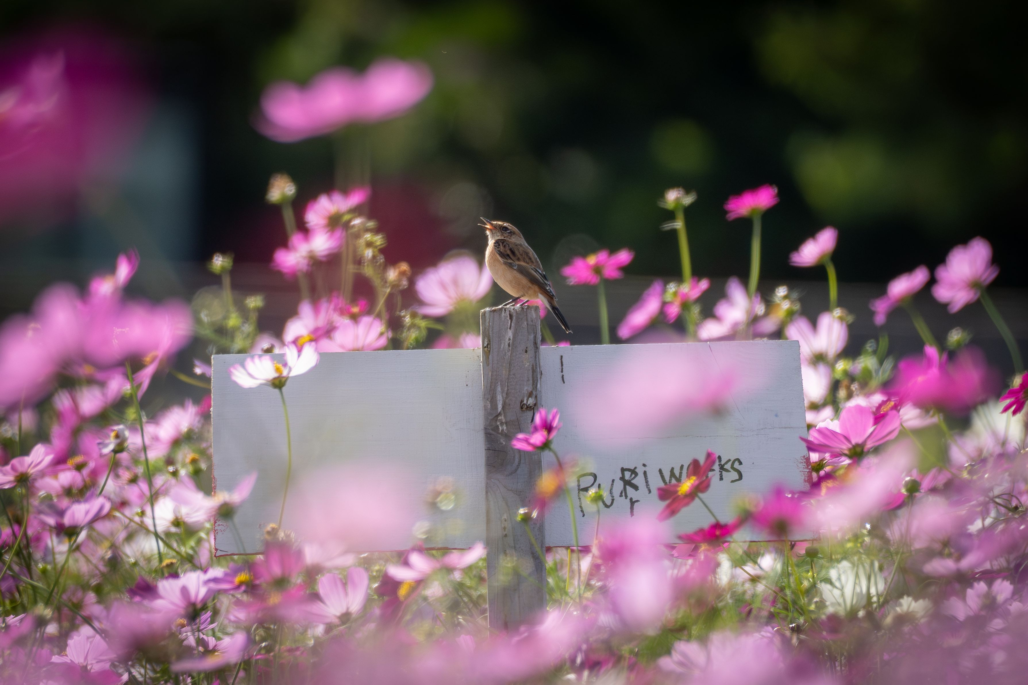 製品情報>My Sony>αcafe>コスモス畑の中心でノビは囀る(gunaさん)