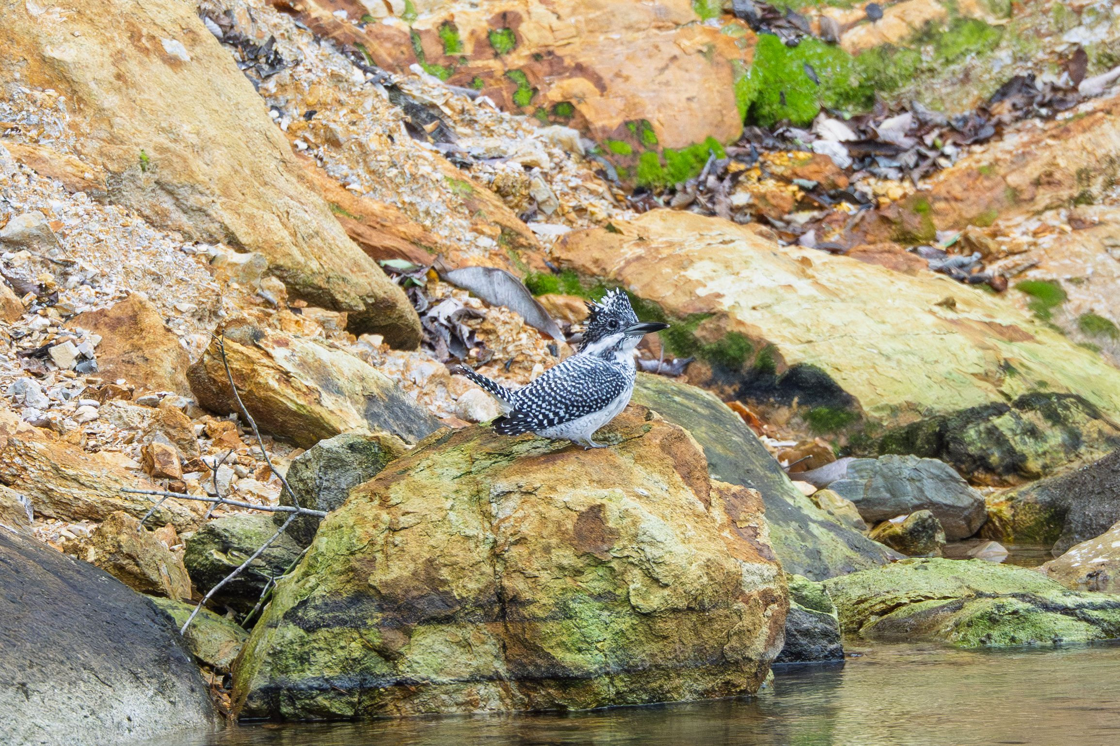 新たな探鳥スポットを開拓すべく川沿いを探索していたらヤマセミさんに会えました。探索成功!