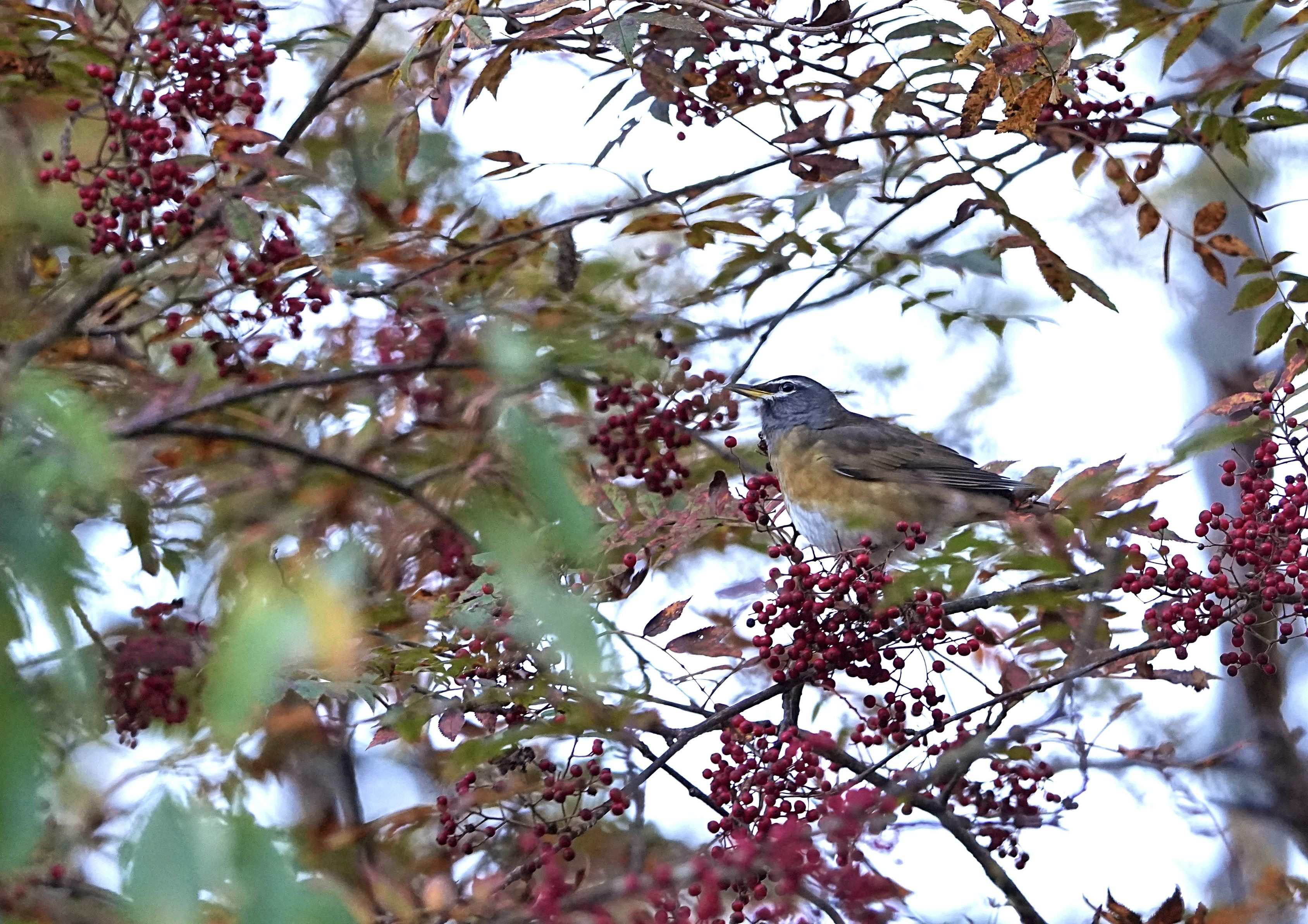ナナカマドの実を啄む#マメチャジナイ#