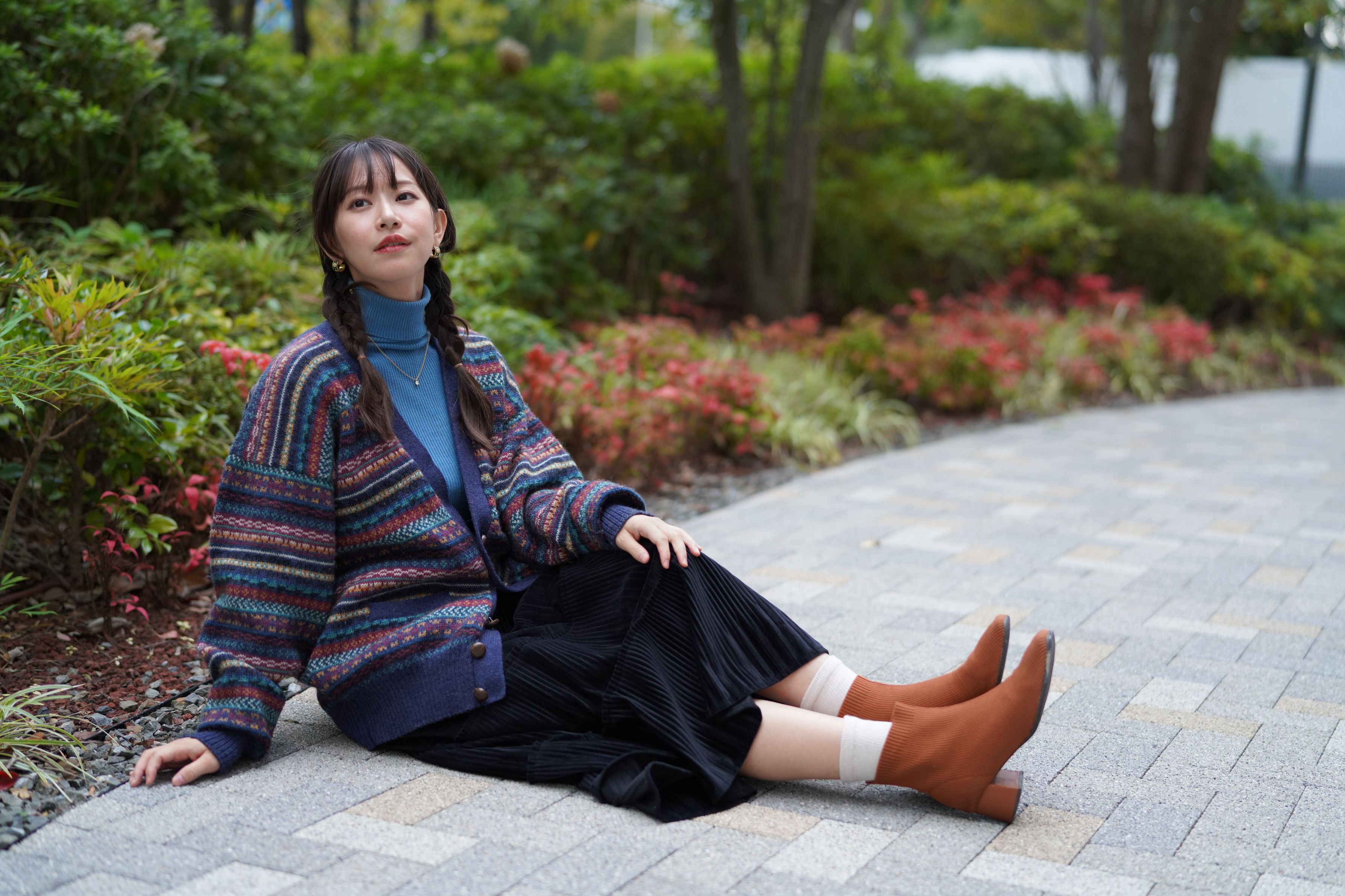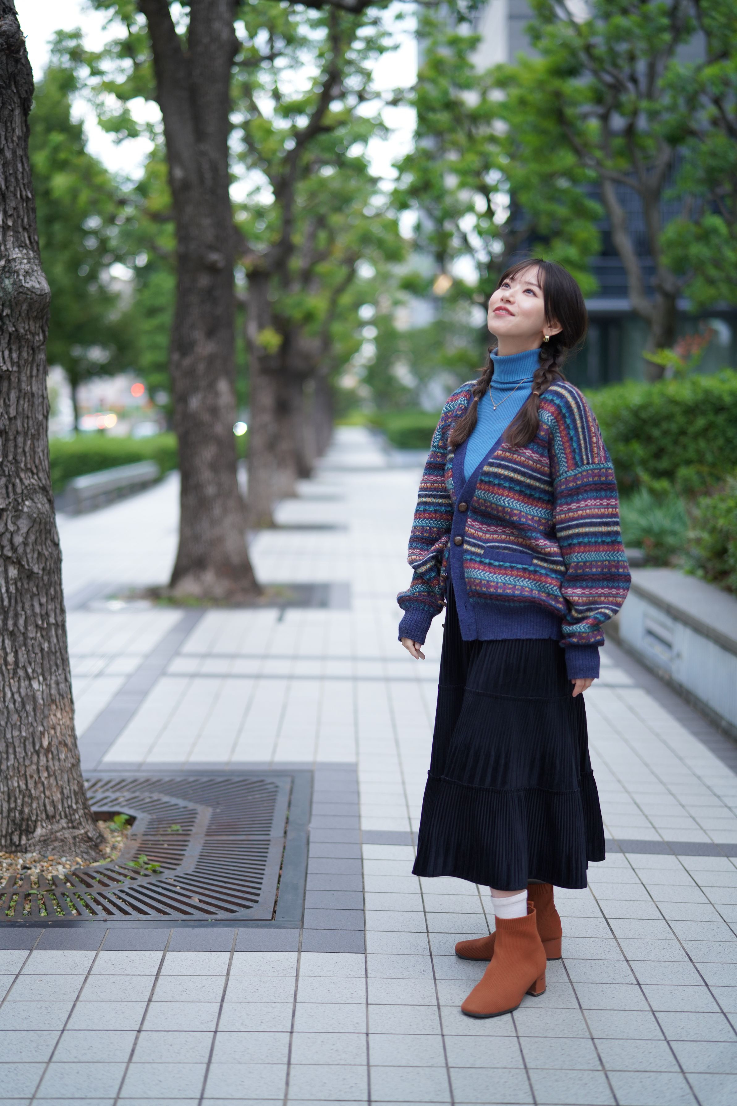 秋が深まり、陽が暮れるのが早くなりましたね。曇りの日の夕方は、光量が減っていくのが、早いように感じます⛅ 今回はビジネス街をぶらぶらと…📸 都会の木々はサラリーマンの心を癒してくれそうですね。 モデル:片平 真鈴さん シロクロ撮影会 ロケ地:ビジネスパーク (大阪市)