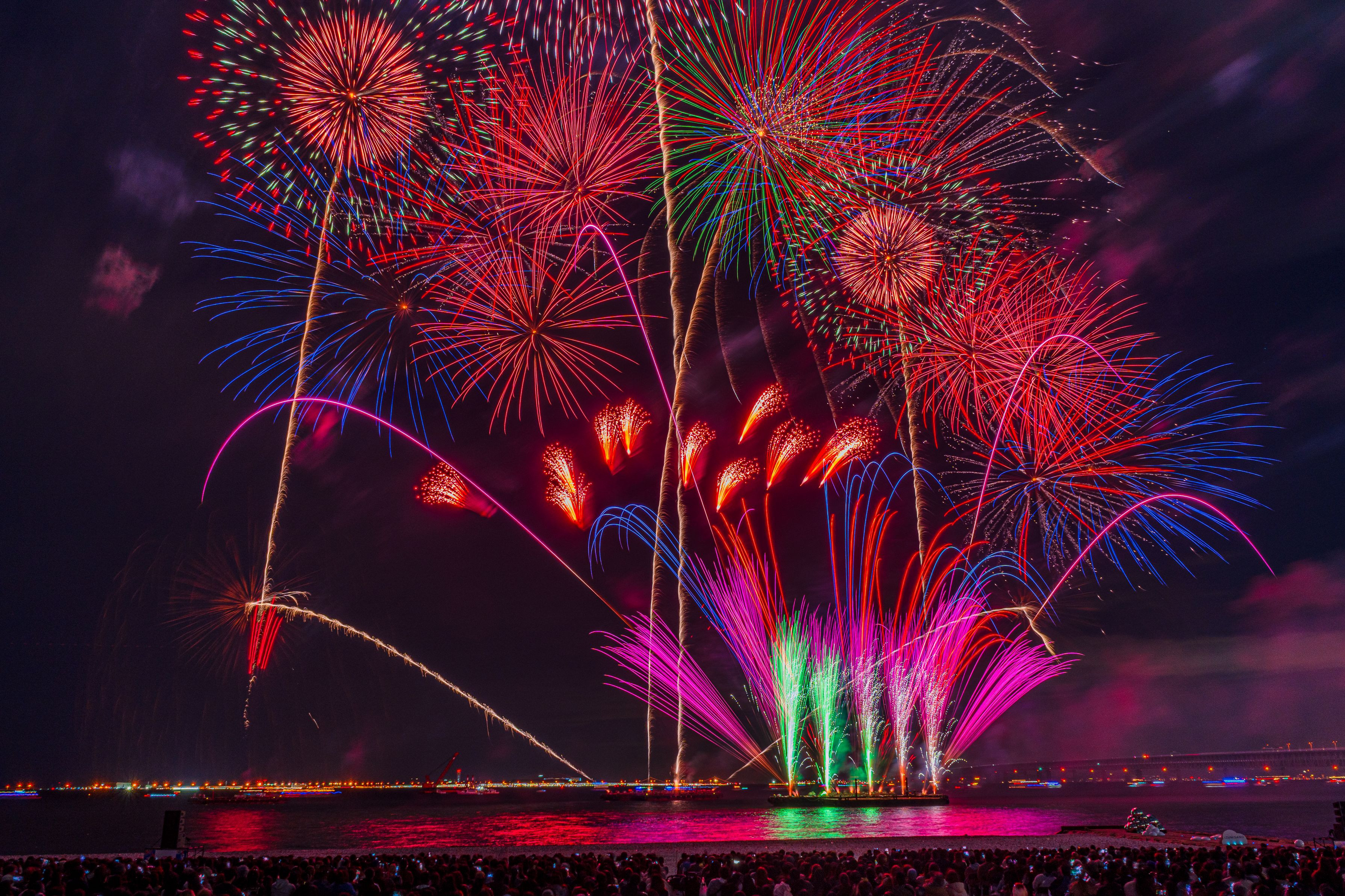 ワイドに広がる花火が多く、見応えがありました。