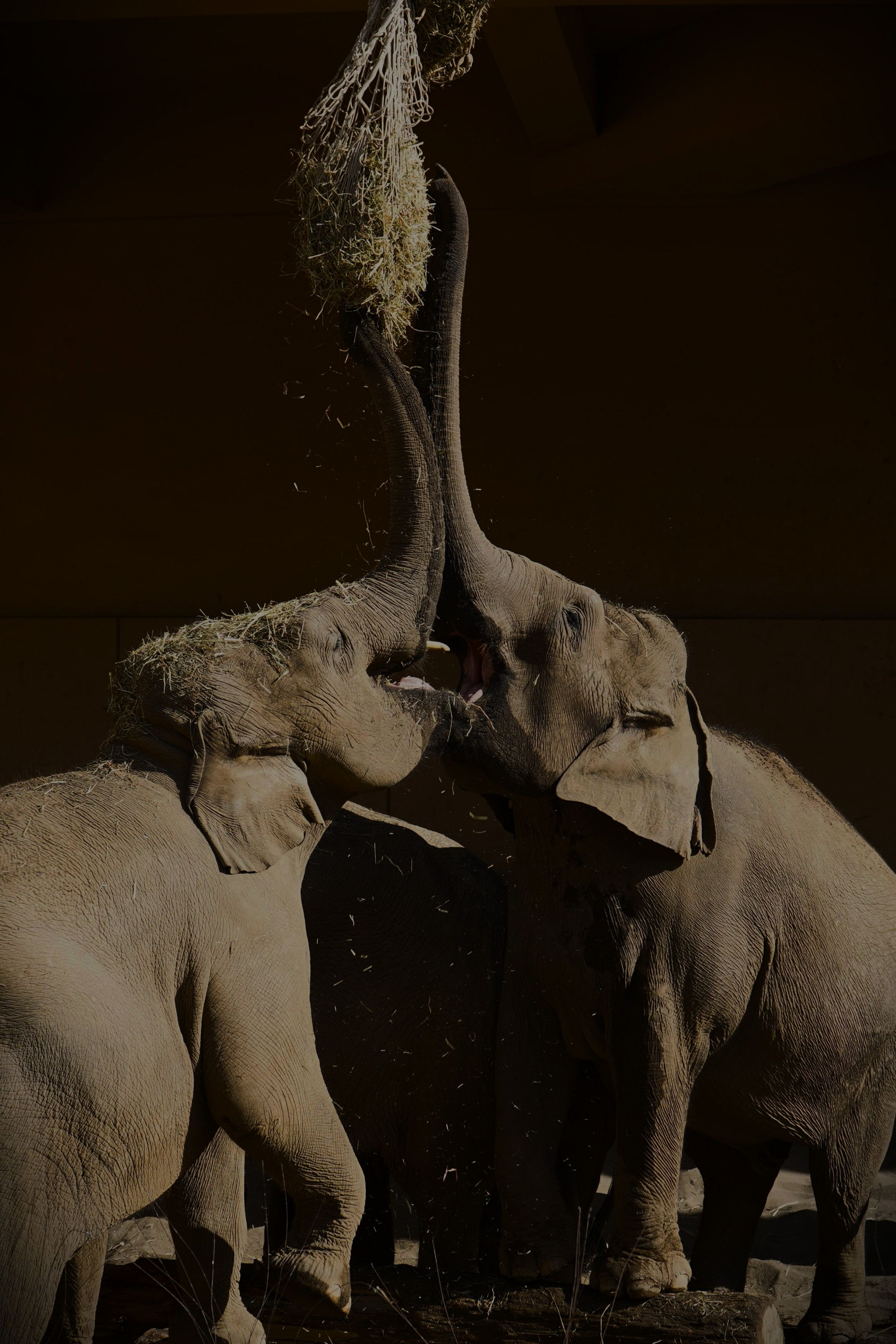 札幌・円山動物園の象さんが吊り下げられた餌を長い鼻で上手に取って食べていました。