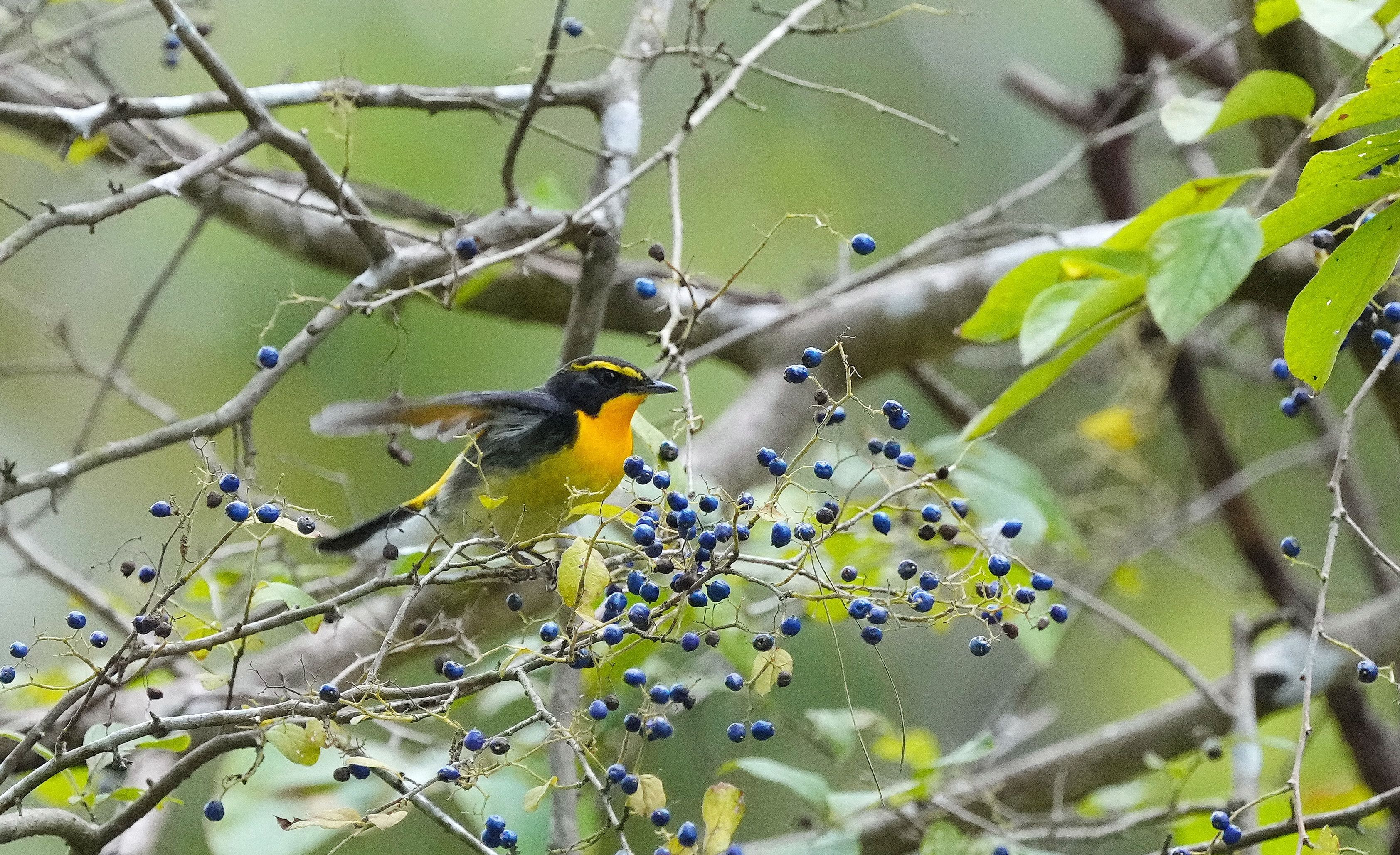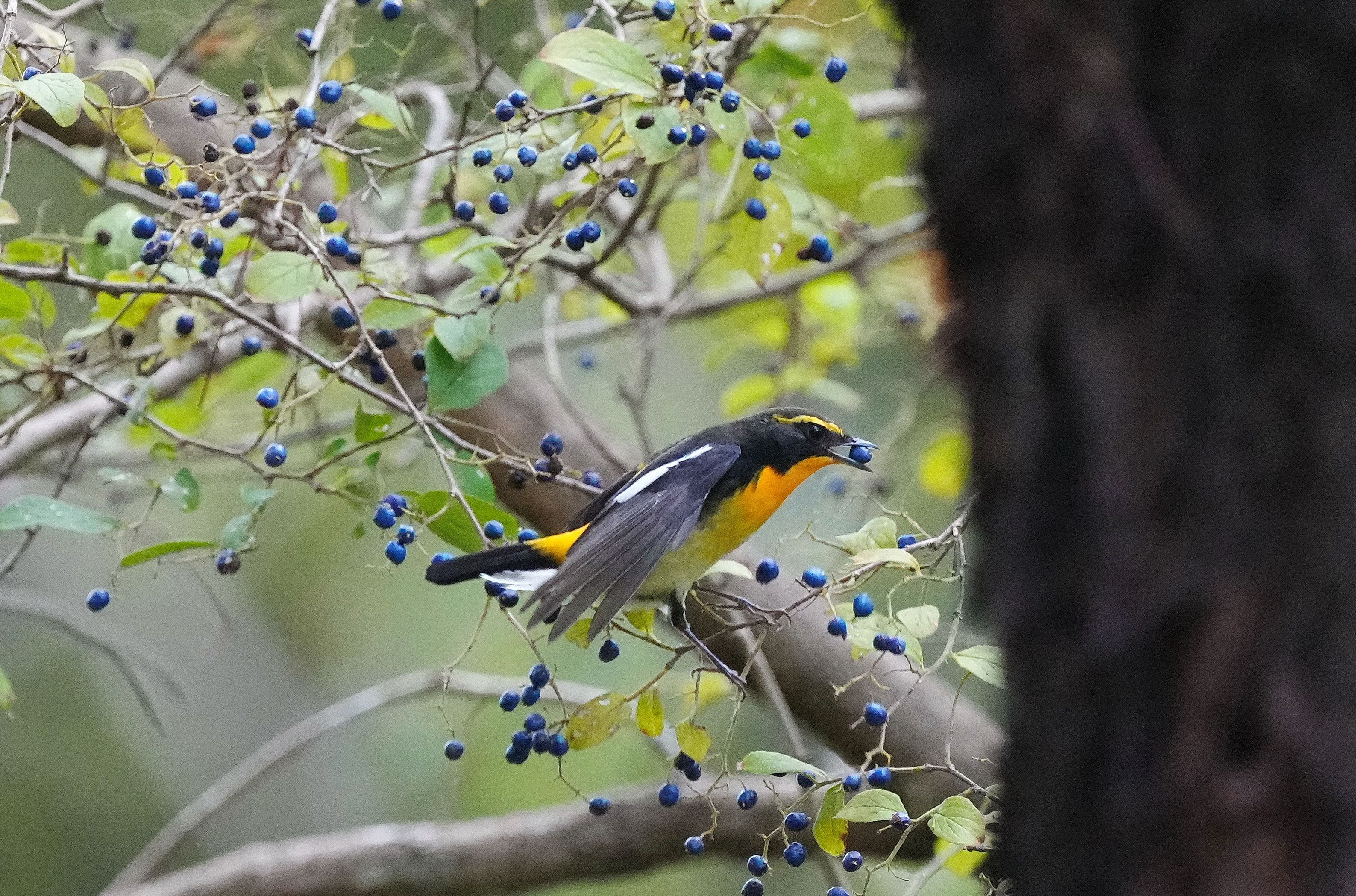キビタキ君の秋の渡りが始まってます。今年はサワフタギの実が豊作でしばらく滞在してます。