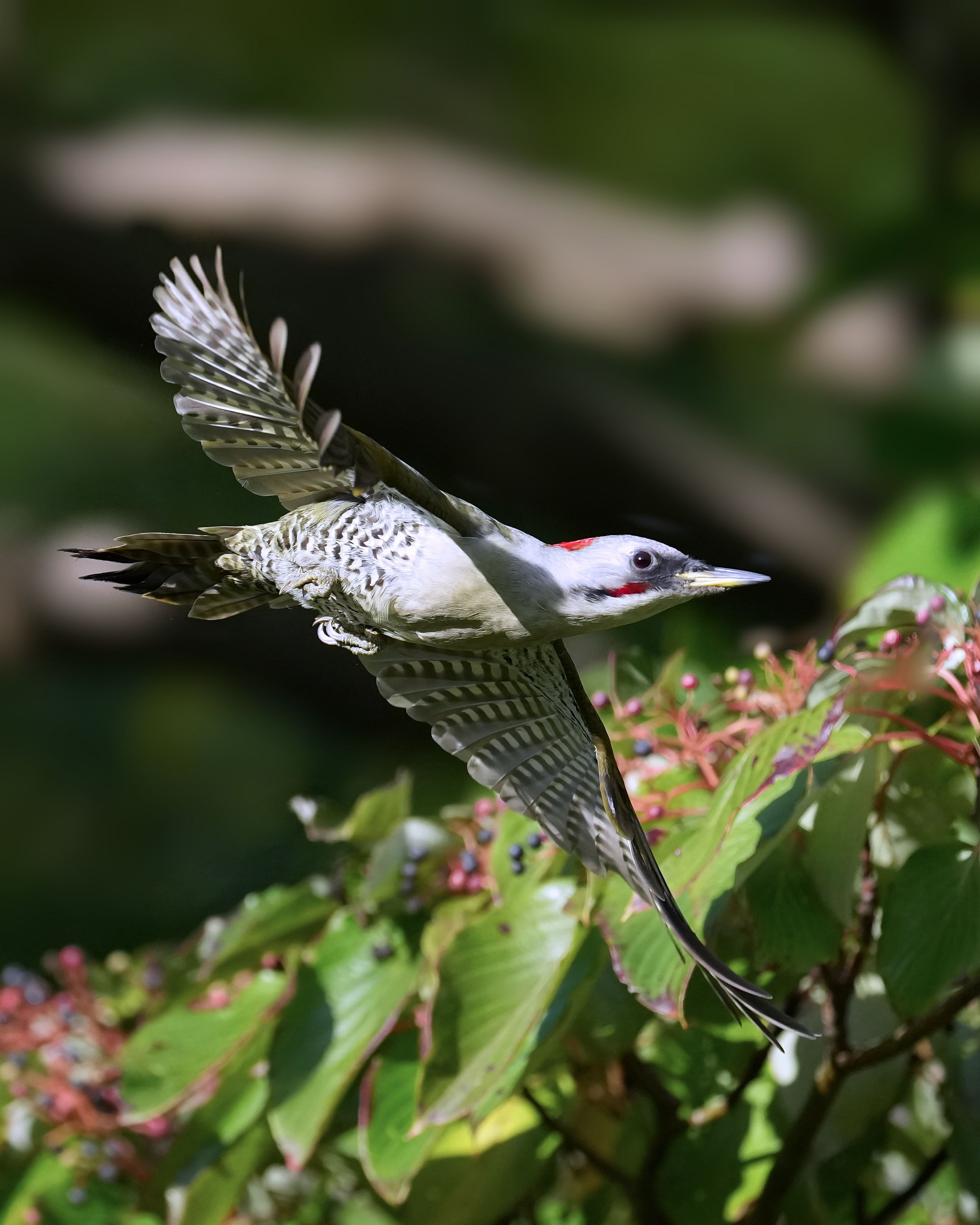 ミズキの実を食べに来たアオゲラさん。 たくさん実があるのでしばらくは来てくれそうです。
