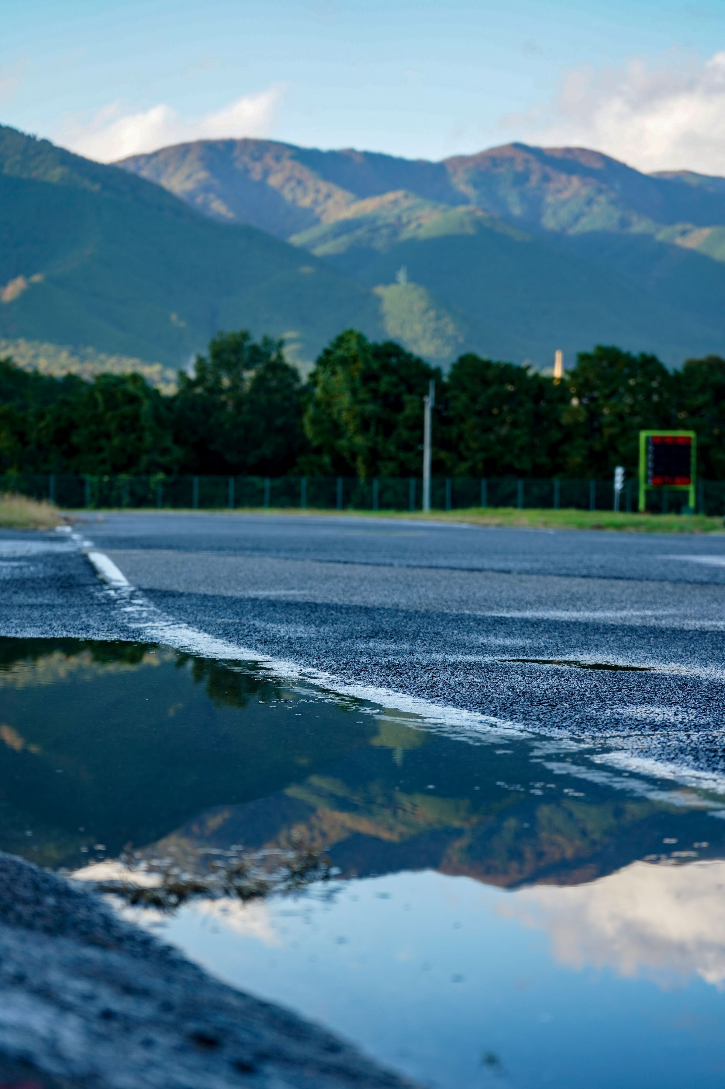 カート練習中に通り雨が、、、。過ぎたあとの水溜まりが綺麗すぎてつい1枚パシャリ。