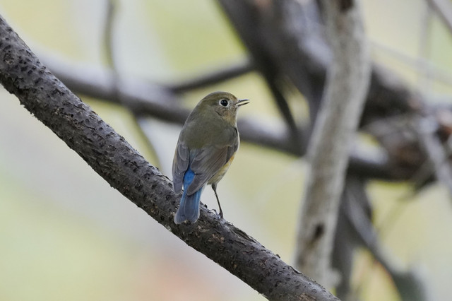 高台の公園、まだ渡っていないルリビタキさんに出会いました♫口元に傷が有りますが… 地面に何度も降りて採食していました♪ 体力を付けて♂なら立派な青色に成った姿を見たいですネ♪