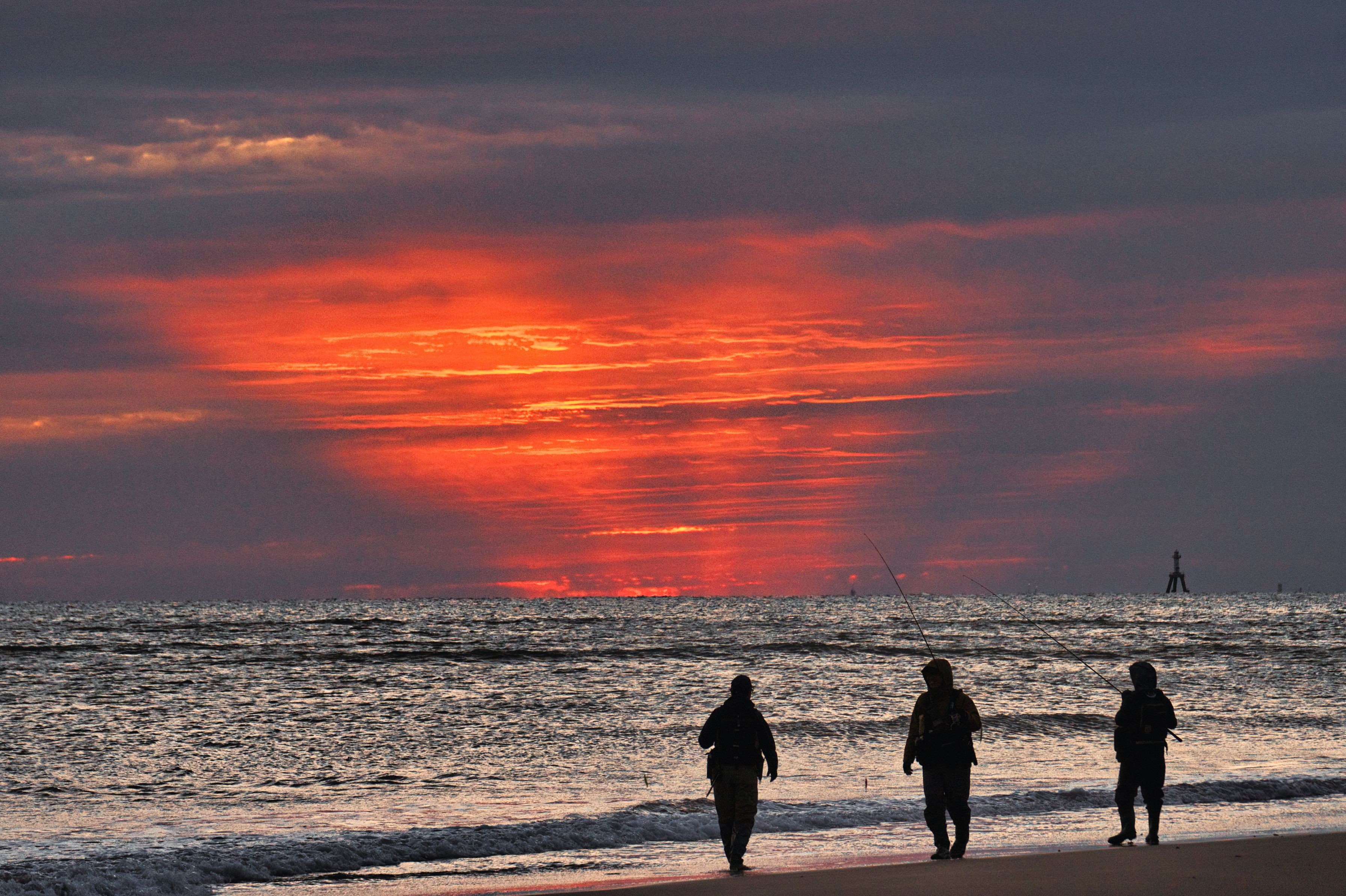日の出時間の写真なんですが この日は雲が厚く 海面との隙間?から 光芒だけが見えました。なんとも不思議な風景でした。 でも こんな時にカメラの設定がうまくできていなかった(~_~;)